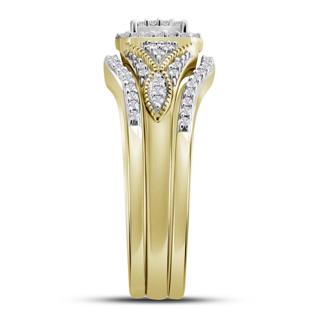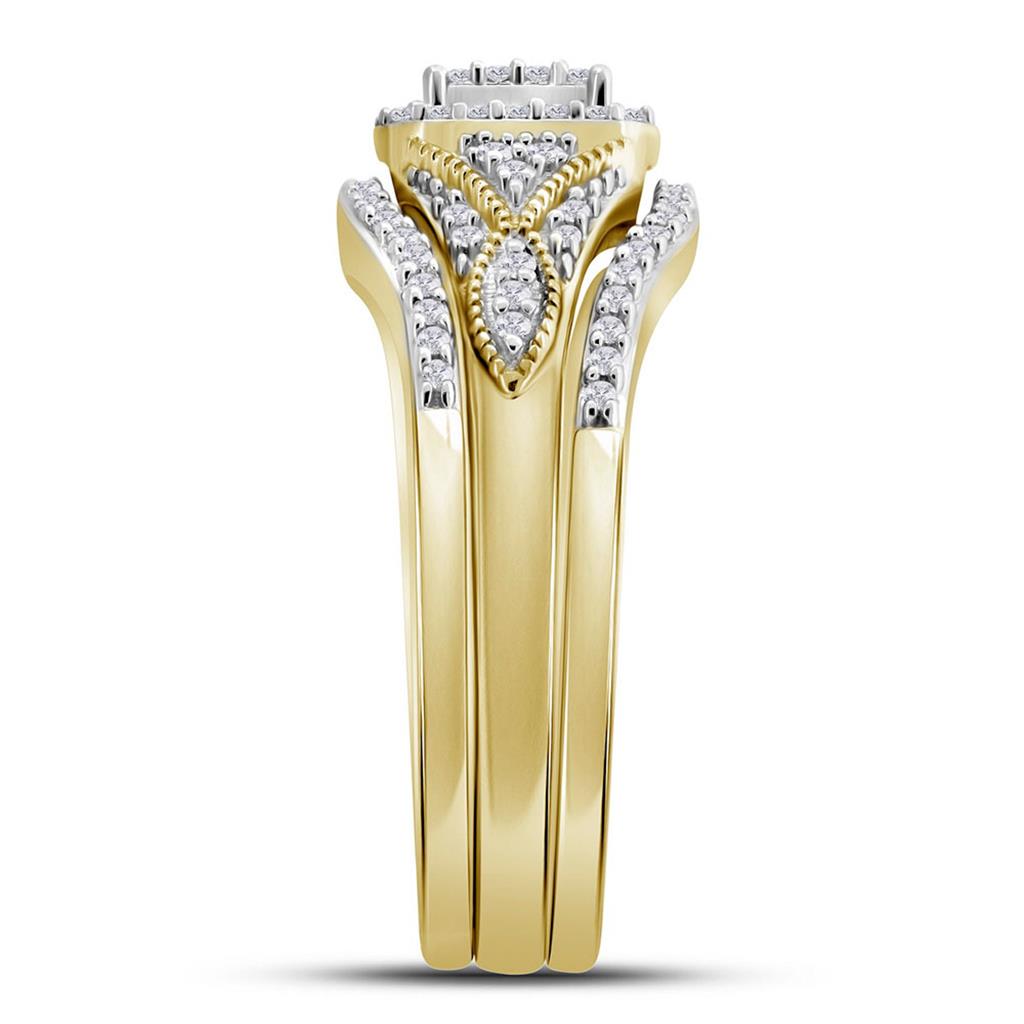 10k Yellow Gold Round Diamond 3-Piece Bridal Wedding Ring Set 1/4 Cttw