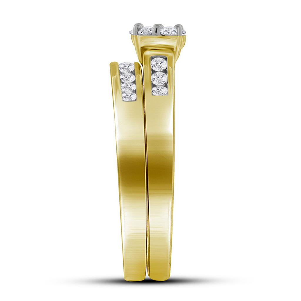 10k Yellow Gold Round Diamond Cluster Bridal Wedding Ring Set 1/2 Cttw