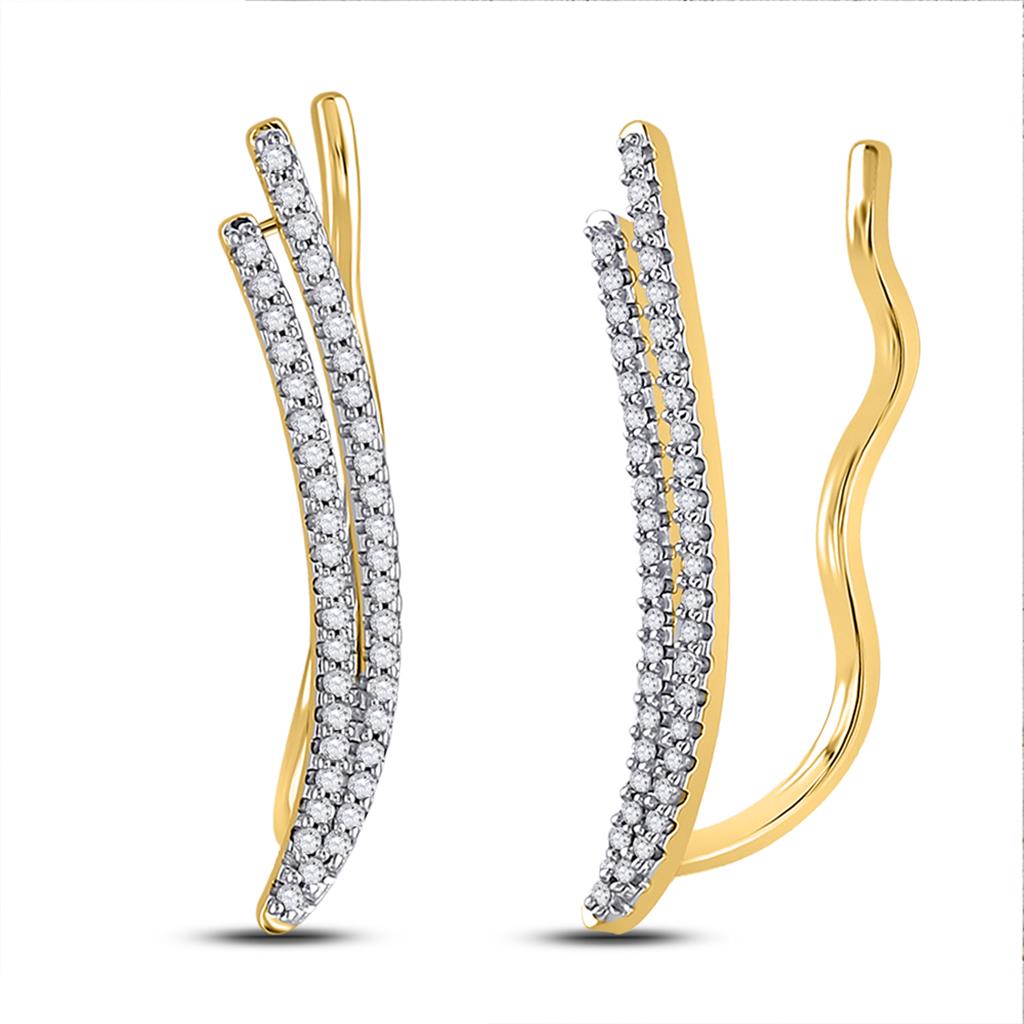 10k Yellow Gold Round Diamond Double Two Row Climber Earrings 1/4 Cttw