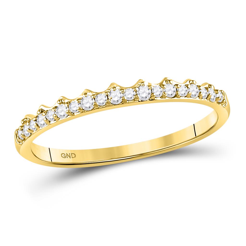 10k Yellow Gold Round Diamond Slender Scalloped Stackable Band Ring 1/6 Cttw
