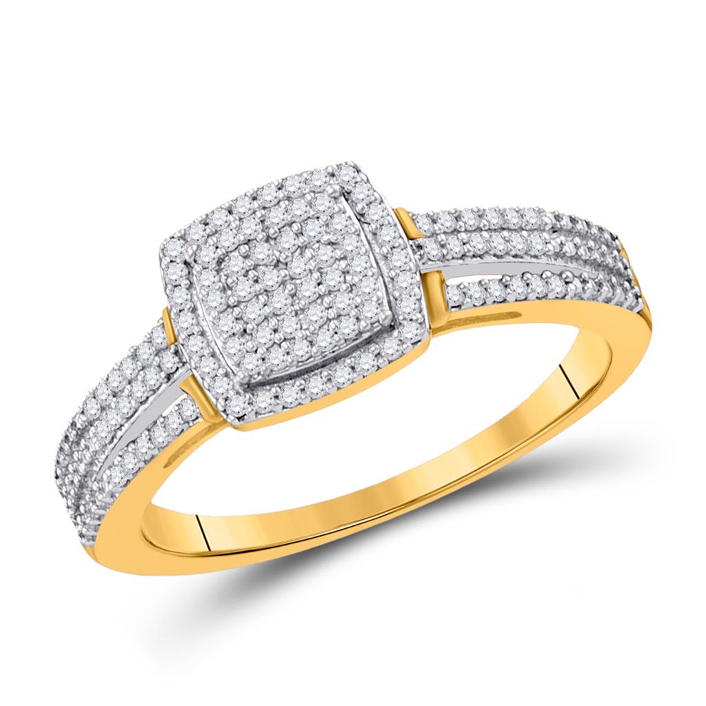 10k Yellow Gold Round Diamond Square Bridal Engagement Ring 1/4 Cttw