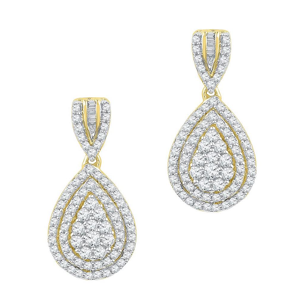 10k Yellow Gold Round Diamond Teardrop Dangle Earrings 7/8 Cttw