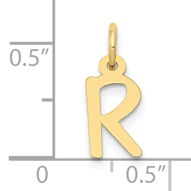 Meet the 10K Yellow Gold Small Slanted Block Initial R Charm, a charming accessory for personal style. Crafted with 10K yellow gold, it catches eyes with its polished shine. This solid gold charm measures 15 mm in length, offering a petite yet elegant presence. Its unique slanted block design on the letter 'R' makes it distinct and stylish. Perfect for themed jewelry collections, this charm is ideal for pendants and charms. Add a personal touch to any necklace or bracelet with the 10K Yellow Gold Small Slanted Block Initial R Charm.