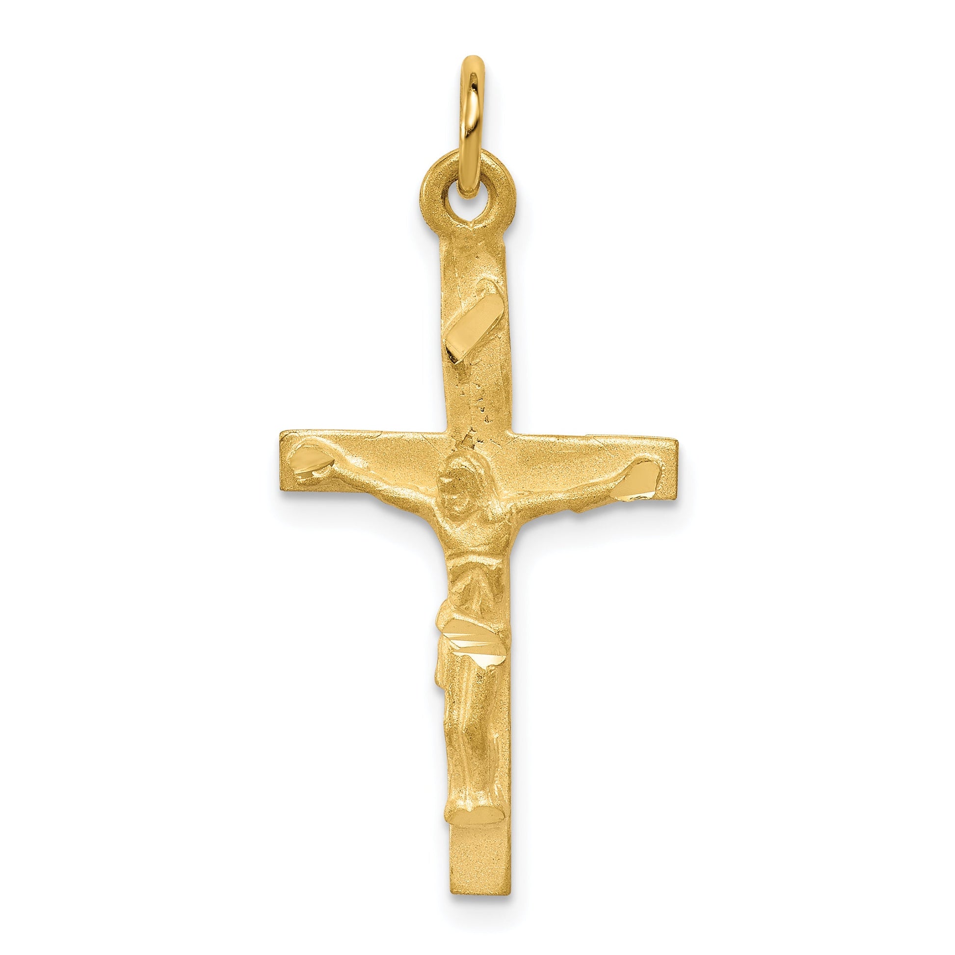Introducing the 10K Yellow Gold Solid Polished Crucifix Pendant, a timeless piece that radiates elegance and spirituality. Crafted from pure 10K yellow gold, this polished pendant features a solid crucifix design, making it a perfect symbol of faith. Measuring 32 mm in length and 16 mm in width, it offers a refined and detailed look. The crucifix itself spans 28.3 mm in length and 14.84 mm in width. The 10K Yellow Gold Solid Polished Crucifix Pendant stands out as a perfect choice for anyone looking to wear their faith with grace and sophistication.