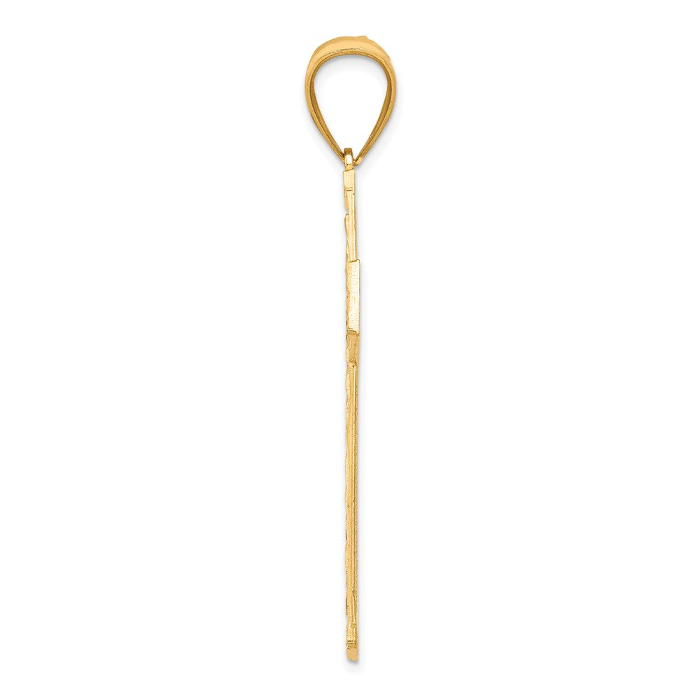 The 10K Yellow Gold with Rhodium Diamond-Cut Cross Pendant embodies elegance and faith. Crafted from 10K gold, this polished piece features striking rhodium accents that enhance its white luster. Measuring 55 mm in length and 28 mm in width, its solid construction ensures durability. The diamond-cut design adds a unique sparkle, making it a standout accessory. Whether for daily wear or special occasions, the 10K Yellow Gold with Rhodium Diamond-Cut Cross Pendant is a timeless addition to any jewelry collection.