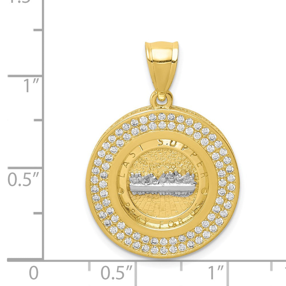 10k Yellow Gold w/Rhodium CZ Channel Edge Pave Last Supper Pendant