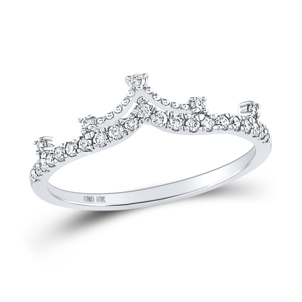 14kt White Gold Round Diamond Crown Tiara Fashion Band Ring 1/5 Cttw