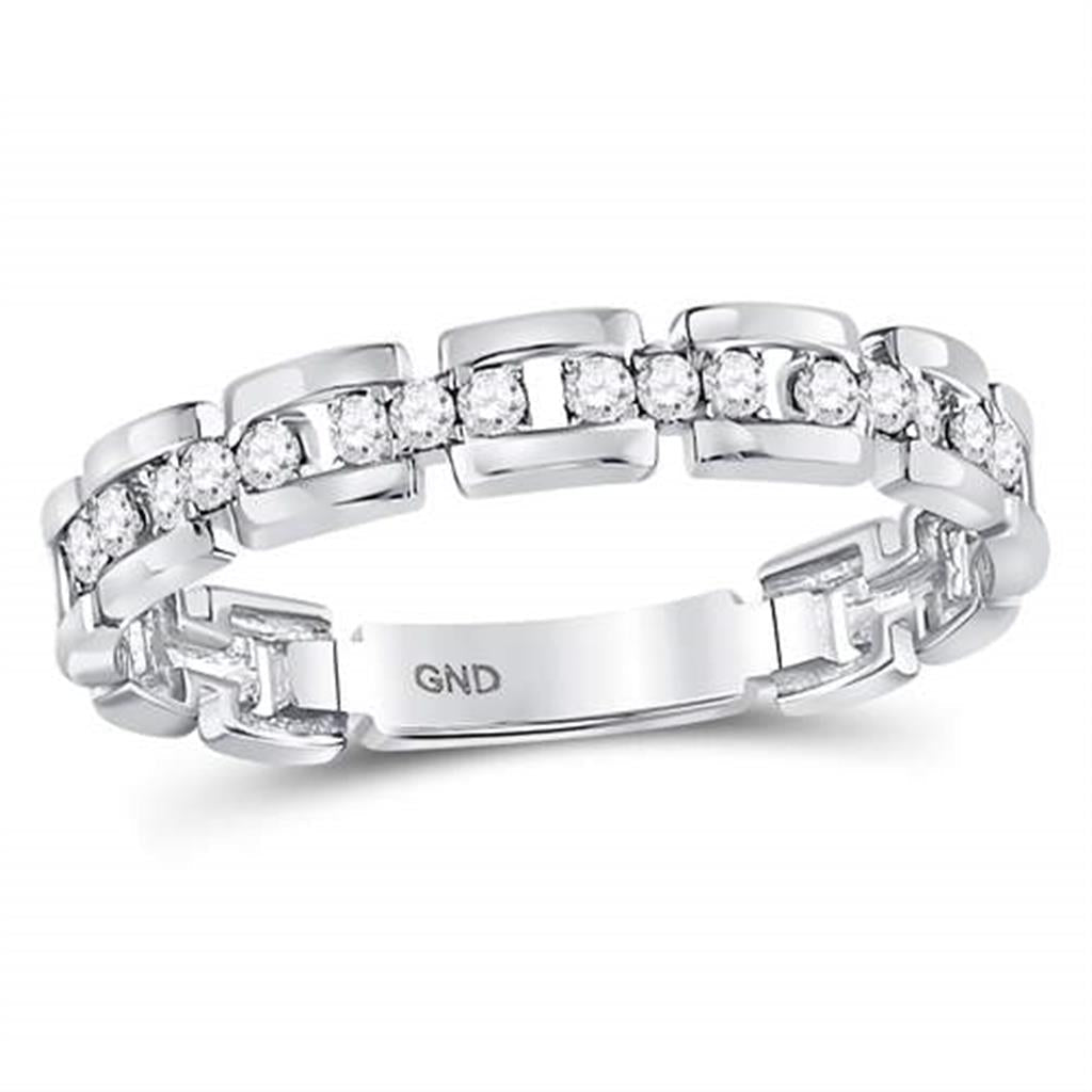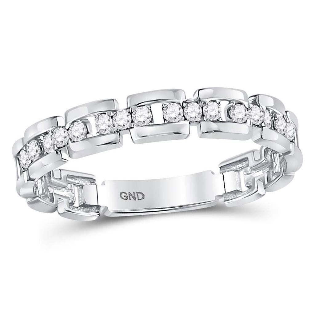 14kt White Gold Round Diamond Rolo Link Stackable Band Ring 1/5 Cttw