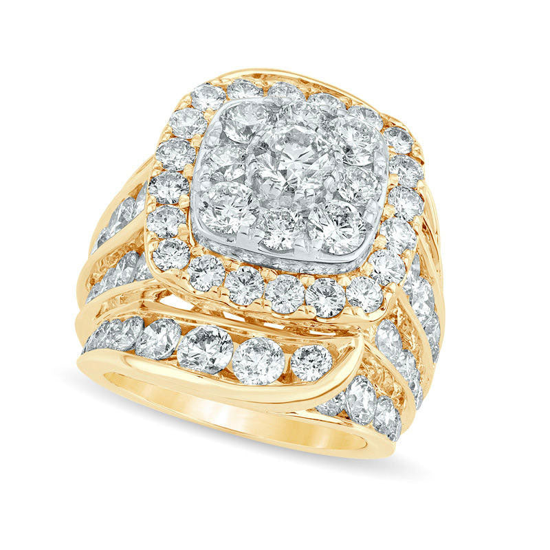 110 CT. T.W. Composite Natural Diamond Double Cushion Frame Multi-Row Engagement Ring in Solid 14K Gold