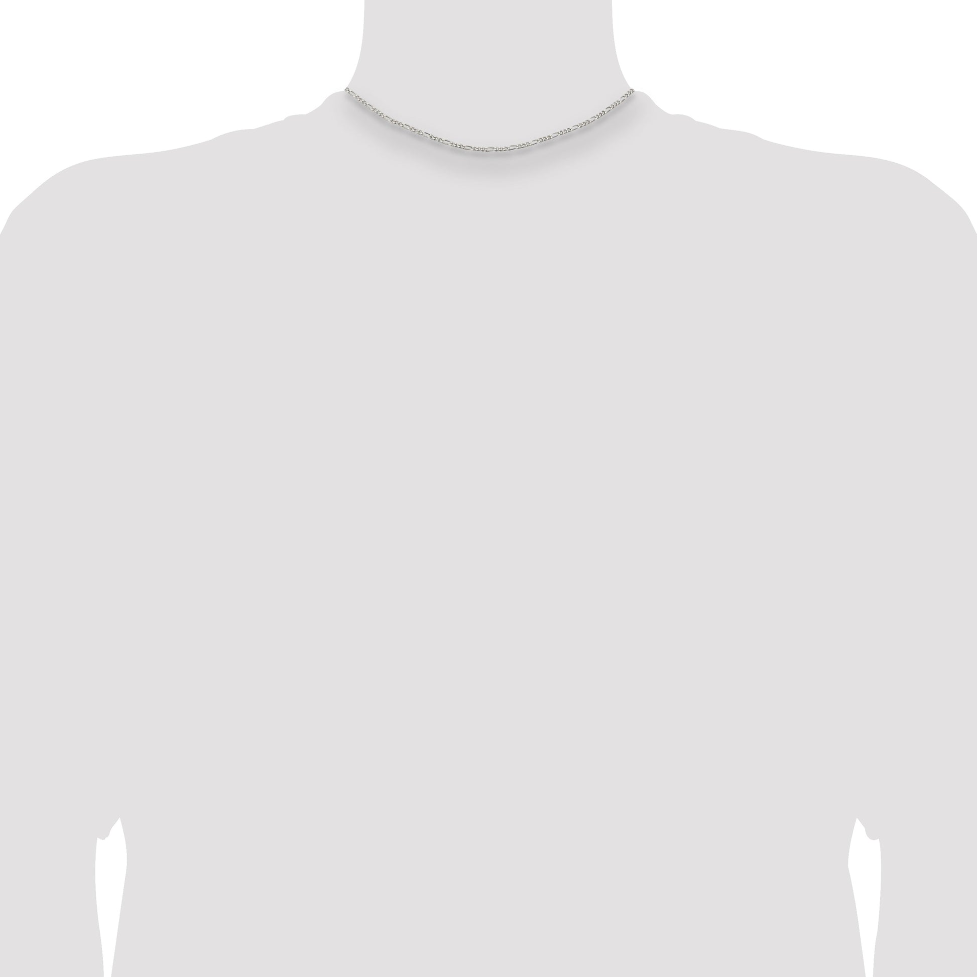 The 14 Inch Sterling Silver 2.25mm Figaro Chain is a staple for any jewelry collection. Crafted with 925 sterling silver, this polished chain measures 14 inches in length, making it perfect for a close fit. Its elegant Figaro design, with a width of 2.25 mm, adds timeless sophistication to any outfit. The solid, machine-made chain features a reliable lobster clasp for secure wear. This sterling silver piece gleams with its classic white sheen, designed specifically for women's style. Elevate your accessory game with the 14 Inch Sterling Silver 2.25mm Figaro Chain.
