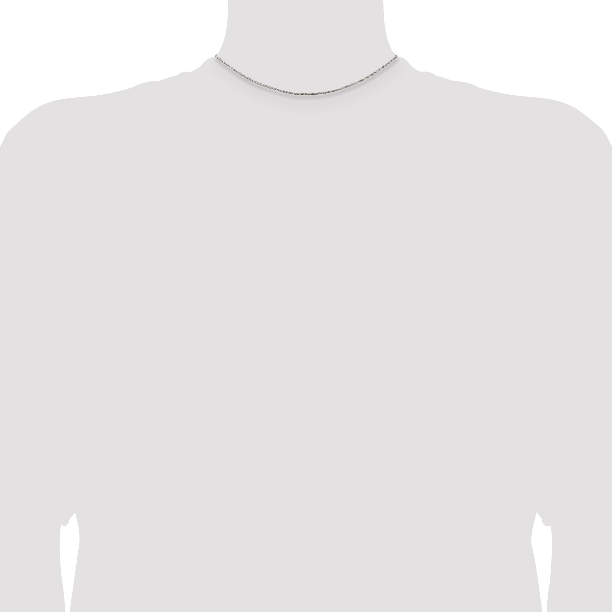 Discover elegance with the 14 Inch Sterling Silver Rhodium-Plated 1.3mm Loose Rope Chain. Crafted from 925 purity sterling silver, this polished piece ensures a stunning look, while its rhodium plating provides extra shine and durability. Measuring 14 inches in length with a 1.3mm width, the rope chain offers a dainty but strong profile, perfect for any pendant. The secure spring ring clasp adds to its charm, making it easy to wear every day. This exquisite necklace not only enhances your style but also promises lasting elegance. Embrace luxury with the 14 Inch Sterling Silver Rhodium-Plated 1.3mm Loose Rope Chain.