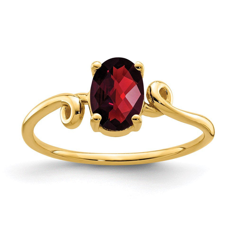 14K Yellow Gold 7x5mm Oval Garnet Checker ring