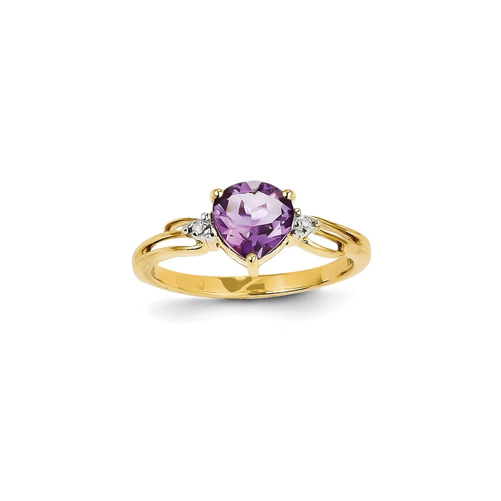 14K Yellow Gold Real Diamond and Amethyst Heart Ring