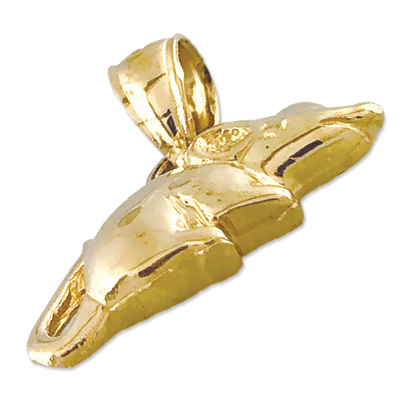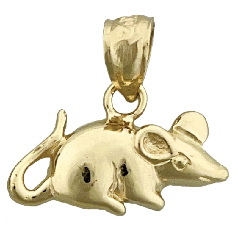 This exquisite 14k gold 18mm mouse charm is an idiosyncratic and stylish accessory that will most definitely become a staple piece in your jewelry collection. The charm is polished to a gleaming sheen and displays a sculpted reverse pattern; it measures 11/16 in width and 5/16 in height, weighing in at around 1.6 grams.