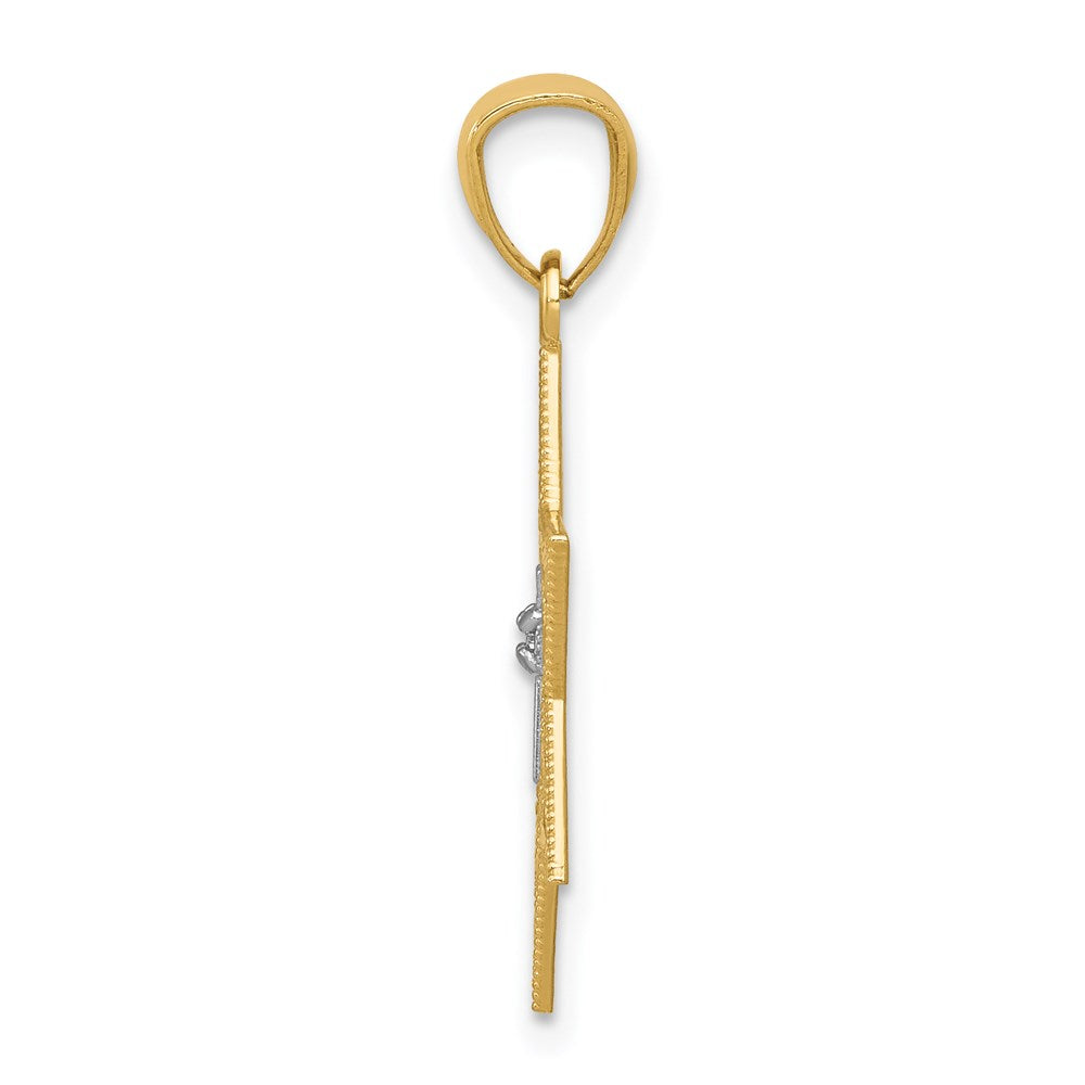 14K Gold Diamond with Rhodium Star of David with Cross Charm