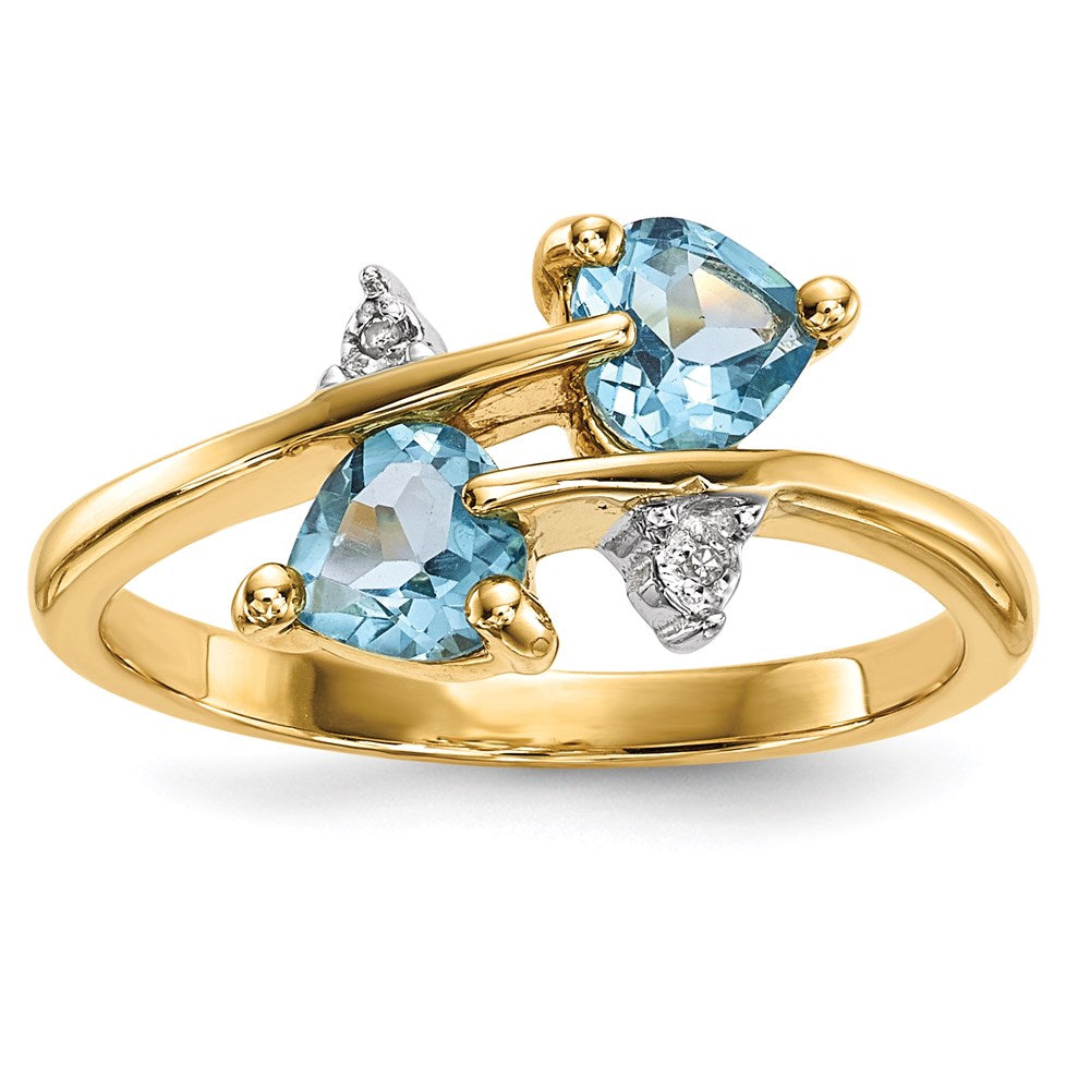 14K Gold w/ Real Diamond & Light Swiss Blue Topaz Ring