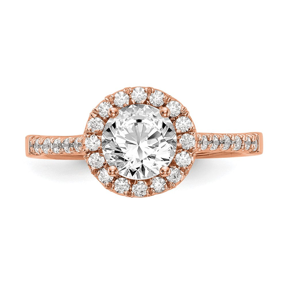 This exquisite 14k Rose Gold Engagement Ring offers a stunning blend of elegance and sustainability. At its heart sits a 1-carat round lab-grown diamond, treasured for its stunning VS/SI+ clarity and captivating G+ color grading. The ring features an additional 14 smaller lab-grown diamonds, each with their brilliance, enhancing the shimmering beauty of the central stone. Crafted in 14k rose gold, it delivers both luxury and ethical appeal. This engagement ring promises a timeless statement of love. Celebrate your unique story with this 14k Rose Gold 1 Ct. Center Round Engagement Ring.