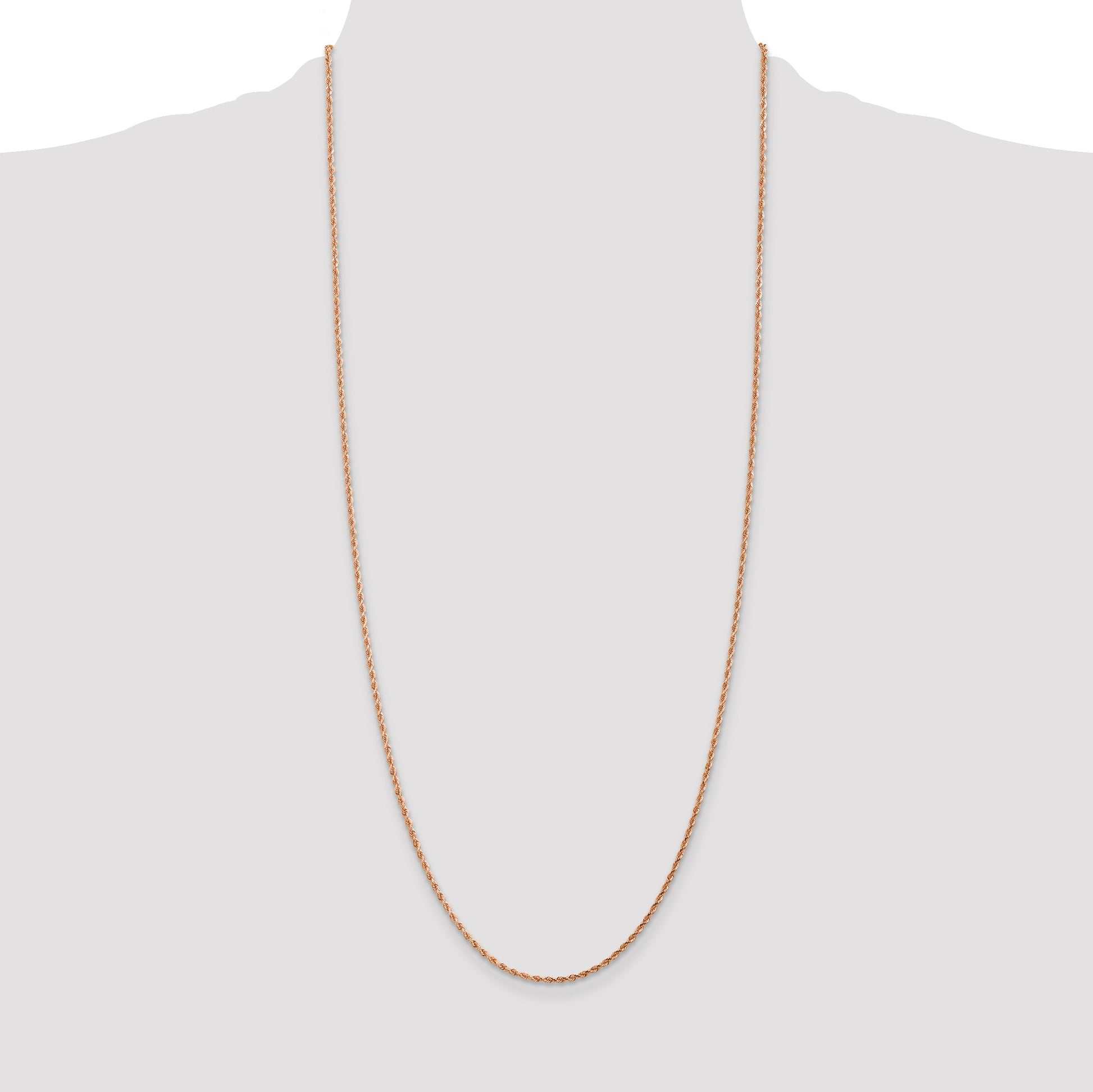 Introducing the exquisite 14k Rose Gold 30-inch Diamond-cut Rope Chain with Lobster Clasp, a stunning piece for those who appreciate fine jewelry. This polished, handmade chain measures 30 inches in length and 1.75mm in width, making it a delicate yet durable accessory. Crafted from solid 14k rose gold, its diamond-cut texture adds a touch of brilliance and elegance. The lobster clasp ensures secure fastening. A perfect choice for any occasion, the 14k Rose Gold 30-inch Diamond-cut Rope Chain will elevate your style effortlessly.