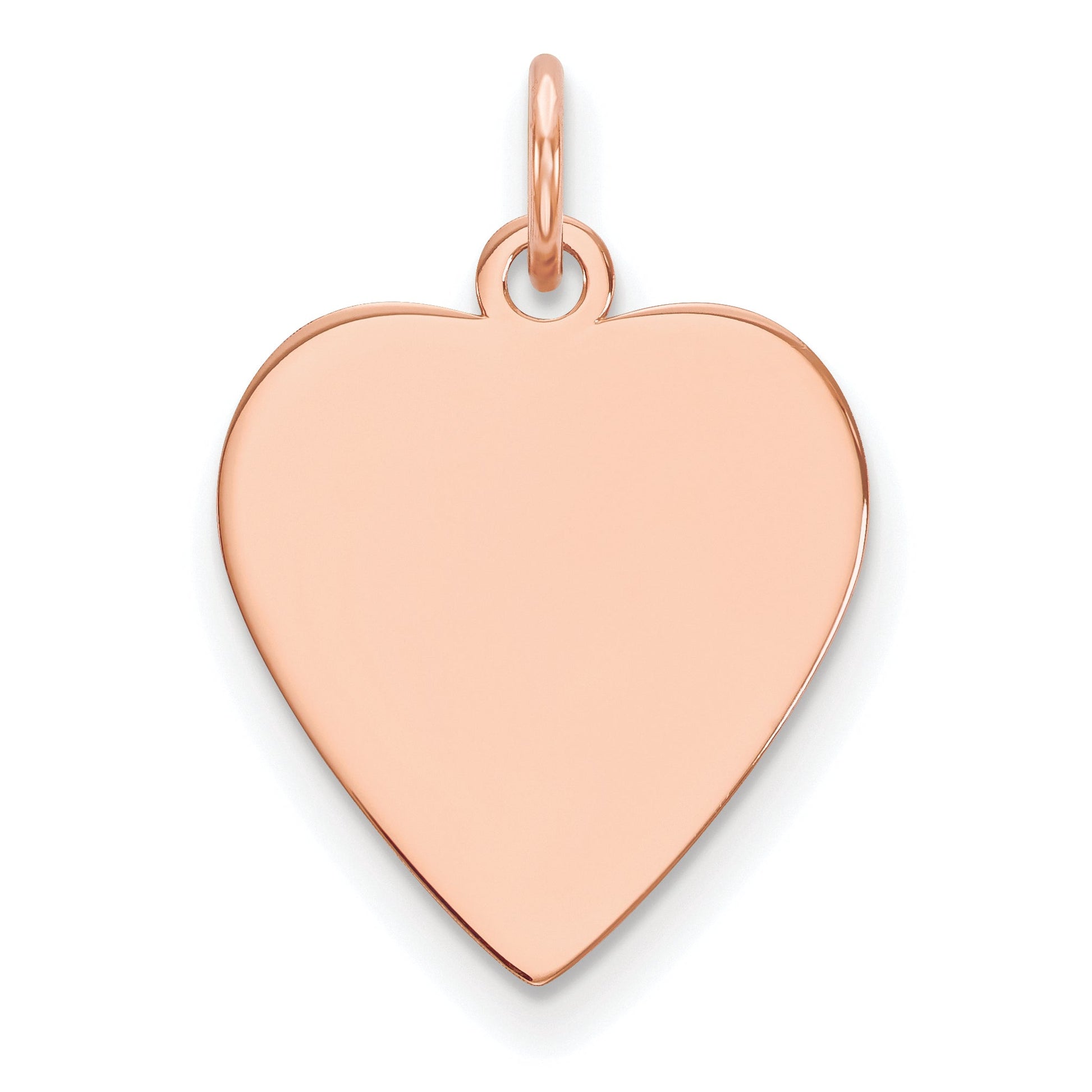 Introducing the stunning 14k Rose Gold Plain .013 Gauge Heart Engravable Disc Charm, a perfect piece for any jewelry lover. Made from high-quality 14k rose gold, this charm boasts a subtle shine and lovely color. Its dimensions of 17mm in length and 16.5mm in width make it an ideal addition to your charm bracelet or necklace. The disc is thin yet durable, with a gauge of 0.013, allowing for easy engraving. Personalize this heart charm to create a memorable gift or a cherished keepsake. Add the 14k Rose Gold Plain .013 Gauge Heart Engravable Disc Charm to your collection today.