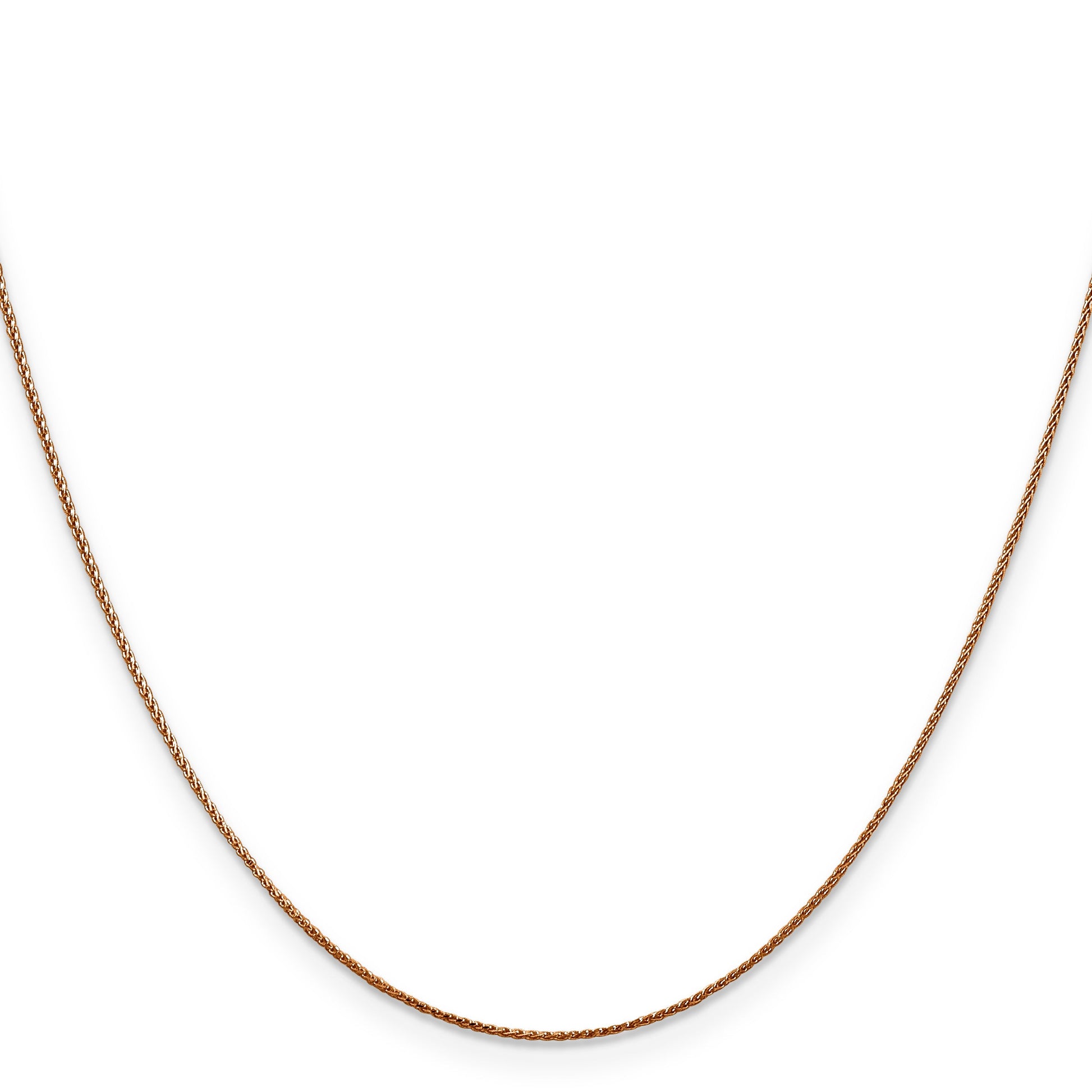 Elevate your style with the stunning 14K Rose Gold 16 Inch .85mm Diamond-Cut Spiga Chain. This exquisite necklace boasts a polished finish that reflects elegance and class. Fashioned from high-purity 14K rose gold, it features a delicate 16-inch wheat-style chain with a refined 0.85mm width. The solid construction ensures long-lasting wear, while the diamond-cut texture adds a touch of sparkle. A sturdy lobster clasp offers secure closure, making it ideal for daily wear. Crafted with precision through die-struck and extruded methods, the 14K Rose Gold Spiga chain enhances any outfit with sophistication and flair.