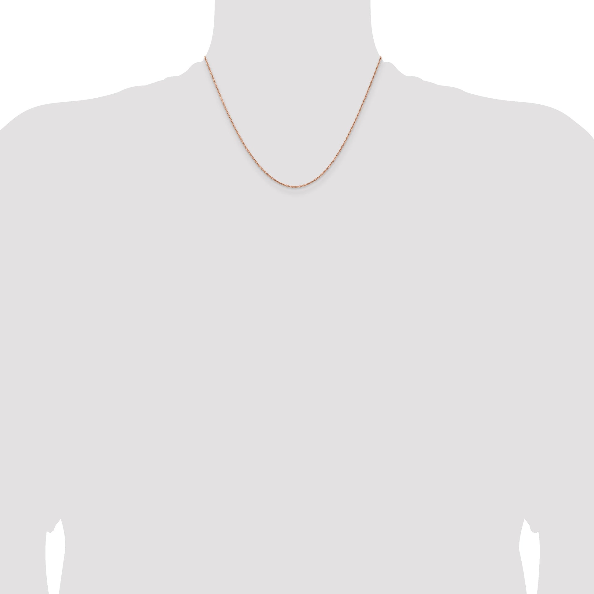 Discover the subtle elegance of the 14K Rose Gold 18 Inch 1.15mm Baby Rope Chain, designed to grace the neck with its delicate beauty. The 14K rose gold offers a warm finish with a polished texture, making it a timeless piece for any occasion. Measuring 18 inches in length, this fine chain suits various necklines, and the 1.15mm width adds a graceful touch. Its solid construction ensures durability, while the secure spring ring clasp provides ease of wear. Elevate your jewelry collection with this classic 14K Rose Gold Baby Rope Chain.