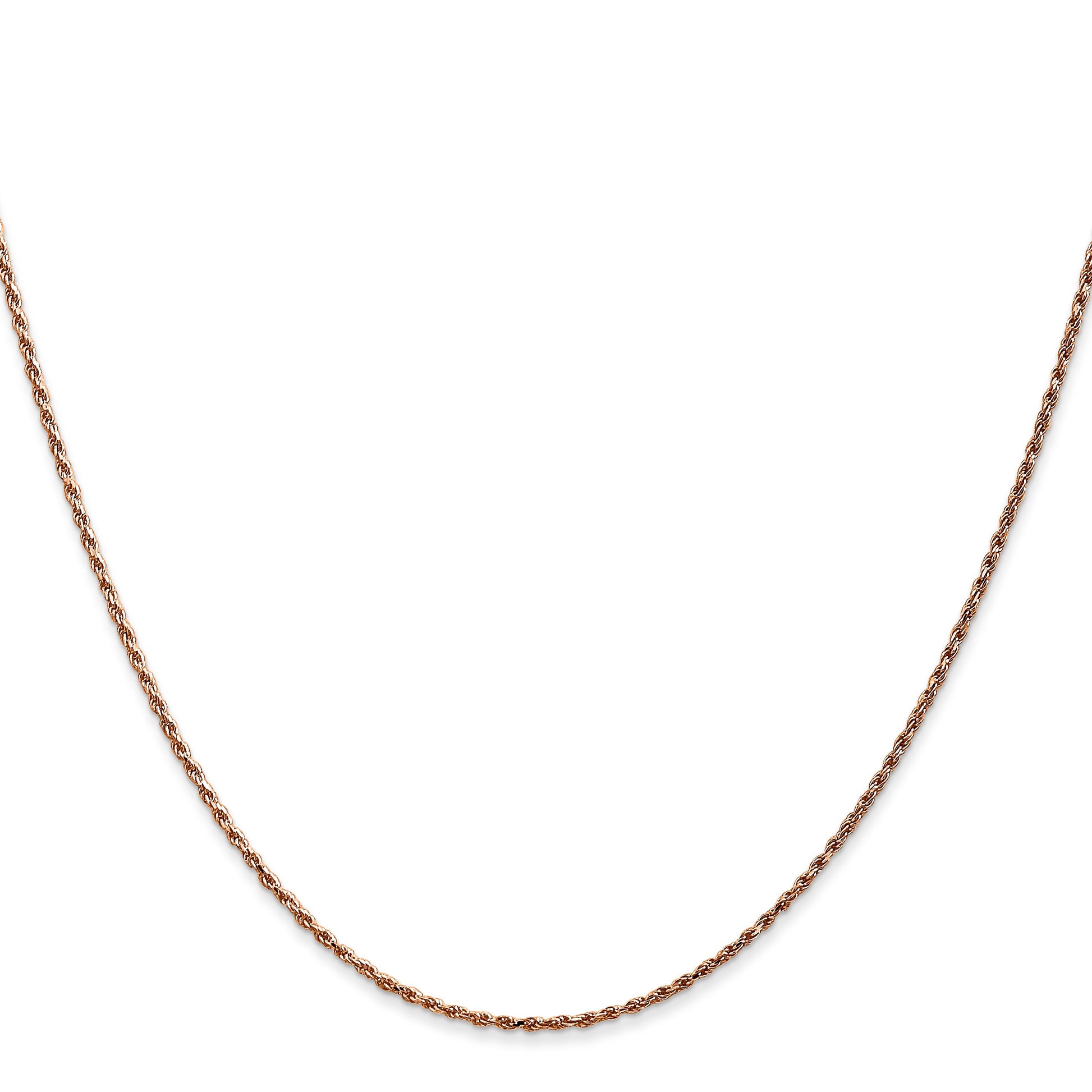 This exquisite 14K Rose Gold 18 Inch 1mm Diamond-Cut Man Made Rope Chain is a must-have for any jewelry lover. Crafted from solid gold, this delicate necklace features a polished finish that glistens beautifully, adding a touch of elegance to any outfit. Its diamond-cut texture enhances its shine, while the 1mm width offers a refined look without being overbearing. The lobster clasp ensures it stays securely in place. Expertly extruded and die struck, this chain is as durable as it is stunning. The 14K Rose Gold Chain is perfect for women seeking a blend of luxury and style.