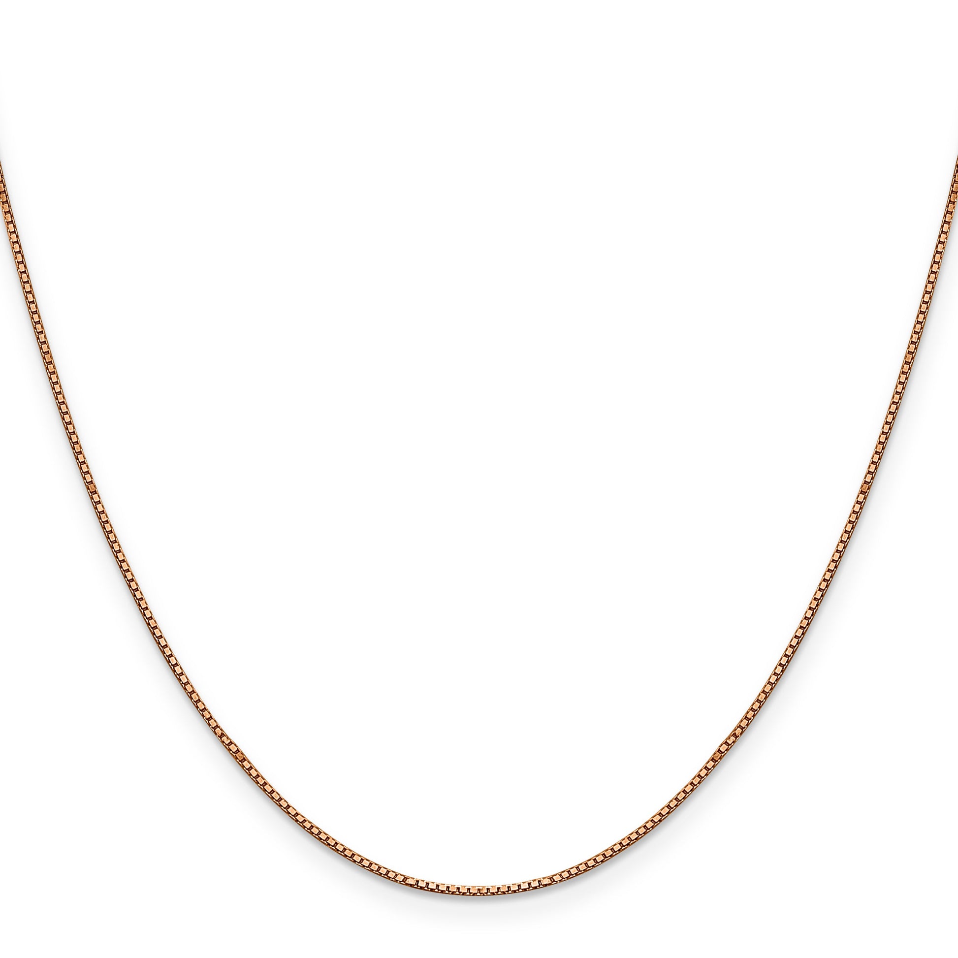 Discover the elegance of our 14K Rose Gold 20 Inch .9mm Box Link Chain that adds a touch of class to any attire. This chain boasts a sleek design, crafted from genuine 14K gold in a captivating rose hue. Its polished finish shines brightly, creating an eye-catching allure. The 0.9mm thickness offers a delicate yet durable feel, and its 20-inch length sits gracefully around the neck. Secured with a lobster clasp, this solid, extruded piece ensures both style and safety. Elevate your jewelry collection with this timeless 14K Rose Gold Box Link Chain.