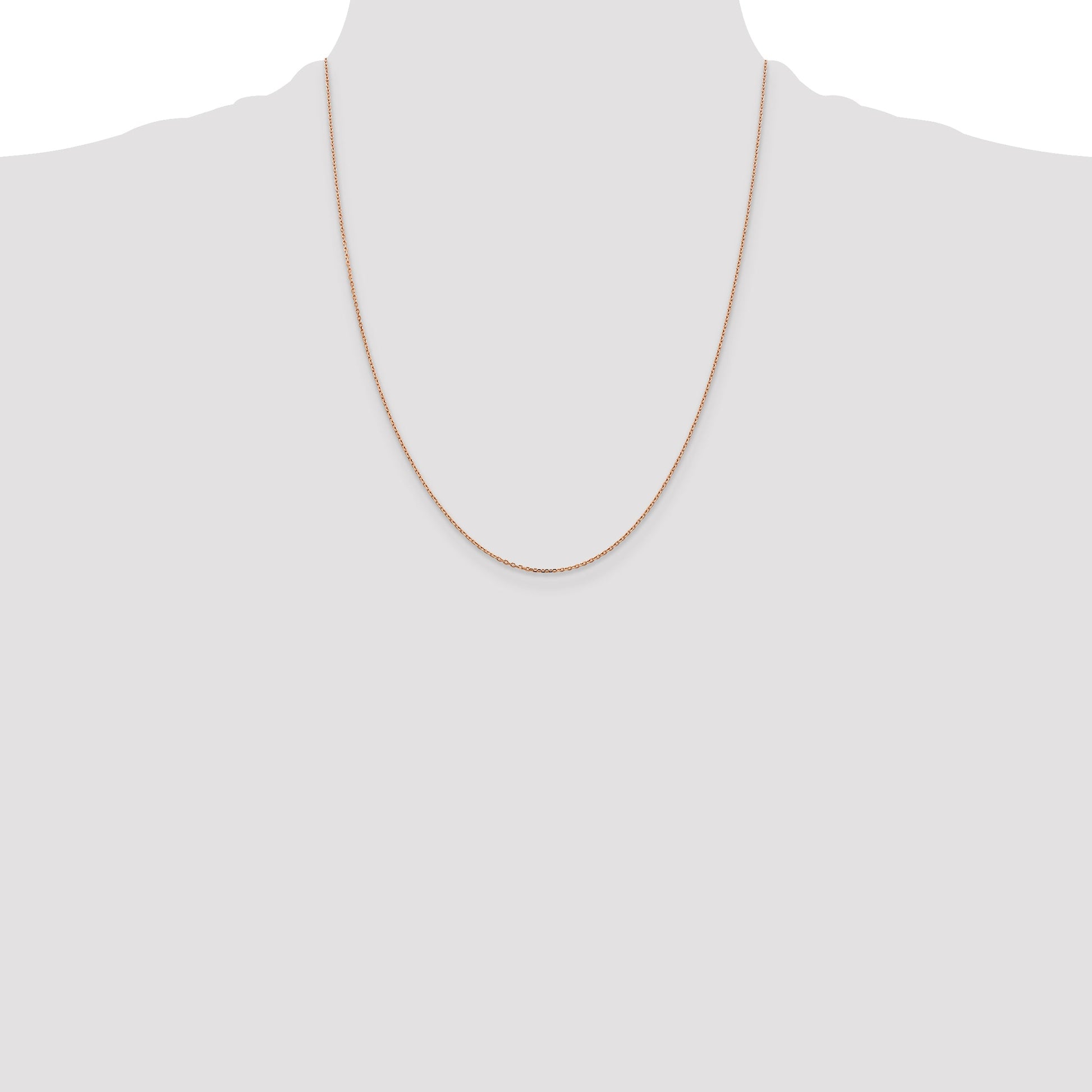 The 14K Rose Gold 22 Inch Diamond-Cut Cable Chain is a stunning piece of fine jewelry. Crafted with polished 14K rose gold, this elegant chain features a durable lobster clasp for easy closure. Its 1.10mm width creates a delicate look, while the diamond-cut texture adds a unique sparkle. With a 22-inch chain length, it drapes beautifully on any neckline. This solid and extruded piece, created through precise die-struck methods, complements any style. The charming rose gold color enhances its beauty, making the 14K Rose Gold Diamond-Cut Cable Chain a perfect addition to your jewelry collection.