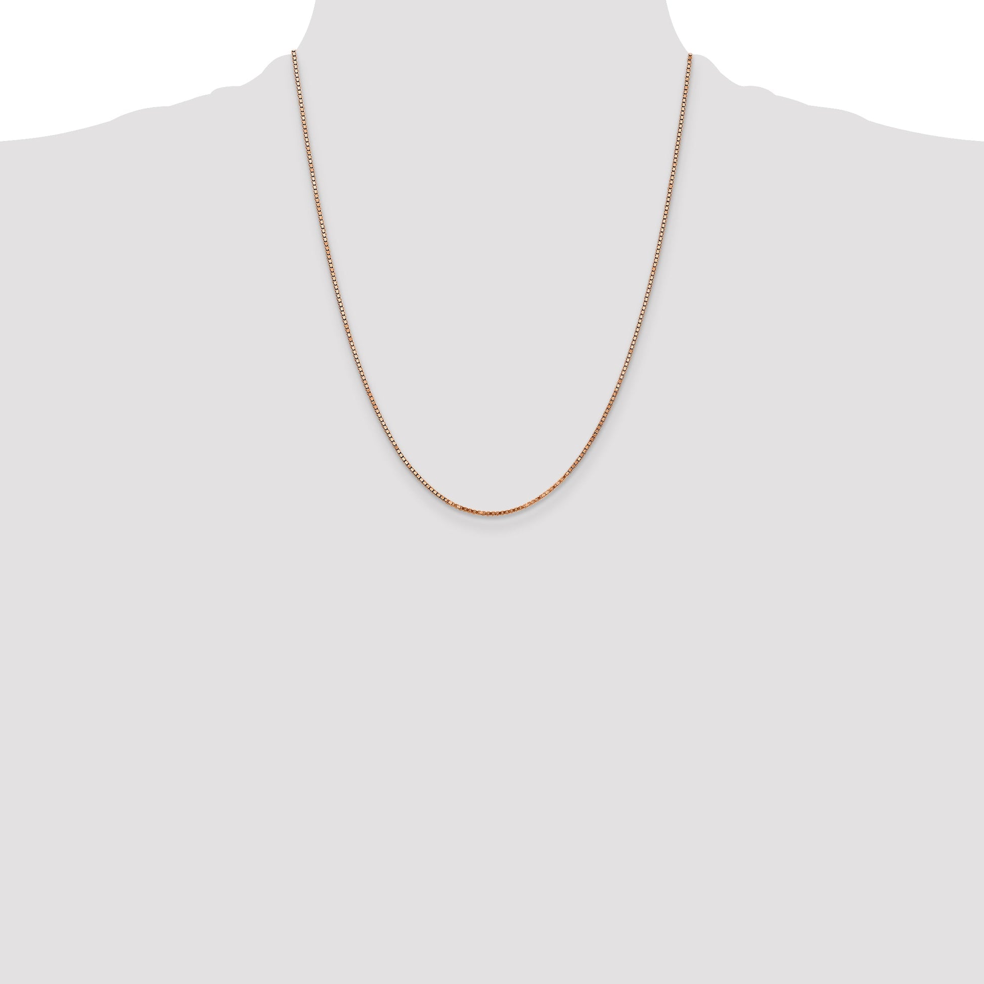 The elegant 14K Rose Gold 22 Inch Box Link Chain is a must-have for any fine jewelry collection. Crafted from solid 14K gold, this chain glows with a polished finish that catches the light beautifully. Measuring 22 inches long and featuring a 1.3mm width, it offers a dainty yet durable design. The box link style provides a classic and timeless look, perfect for layering or wearing alone. With a secure lobster clasp, this chain ensures your jewelry remains safely in place. Upgrade your style effortlessly with this exquisite 14K Rose Gold Box Link Chain.