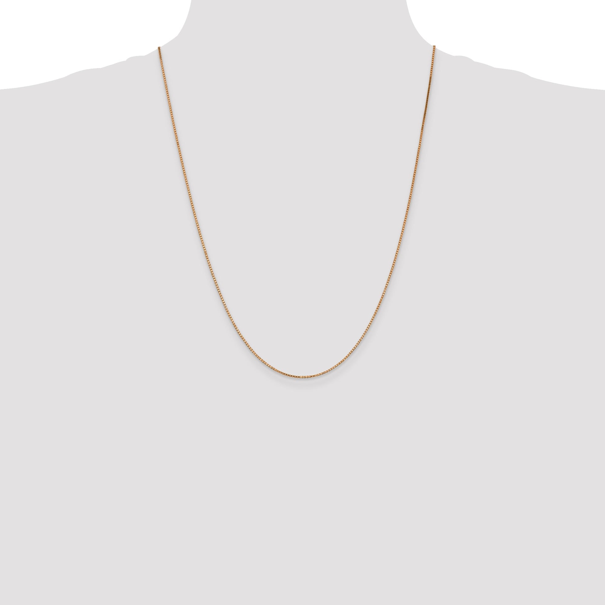 Discover the exquisite charm of the 14K Rose Gold 24 Inch 1.10mm Box Link Chain, a stunning piece for any jewelry collection. Crafted from polished 14K rose gold, this chain offers both elegance and durability. Its 24-inch length provides a graceful drape, while the 1.10mm width ensures a sleek, sophisticated appearance. The box link design adds strength and timeless appeal, making it an ideal choice for everyday wear or special occasions. Secured with a reliable lobster clasp, this solid, die-struck chain promises longevity. Embrace luxury with this exquisite 14K Rose Gold 24 Inch 1.10mm Box Link Chain, an embodiment of style and sophistication.
