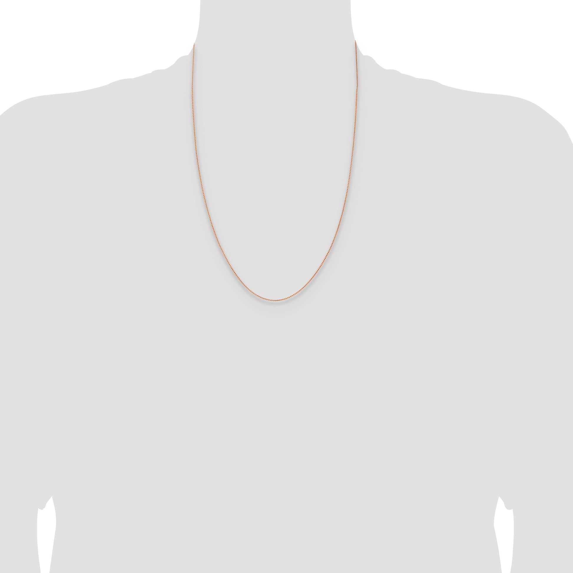 The 14K Rose Gold 24 Inch Solid Polished Spiga Chain is a blend of elegance and timeless design. Crafted in shining polished rose gold, this 1mm thick chain draws admiring glances. It stretches to a perfect 24 inches, offering versatility for numerous styles. Engineered with a lobster clasp, it promises secure wear that still allows easy on-and-off convenience. Its wheat style, also known as Spiga, brings intricacy and durability to the piece. Skillfully crafted through extrusion and die striking methods, this necklace captures the essence of exquisite jewelry.