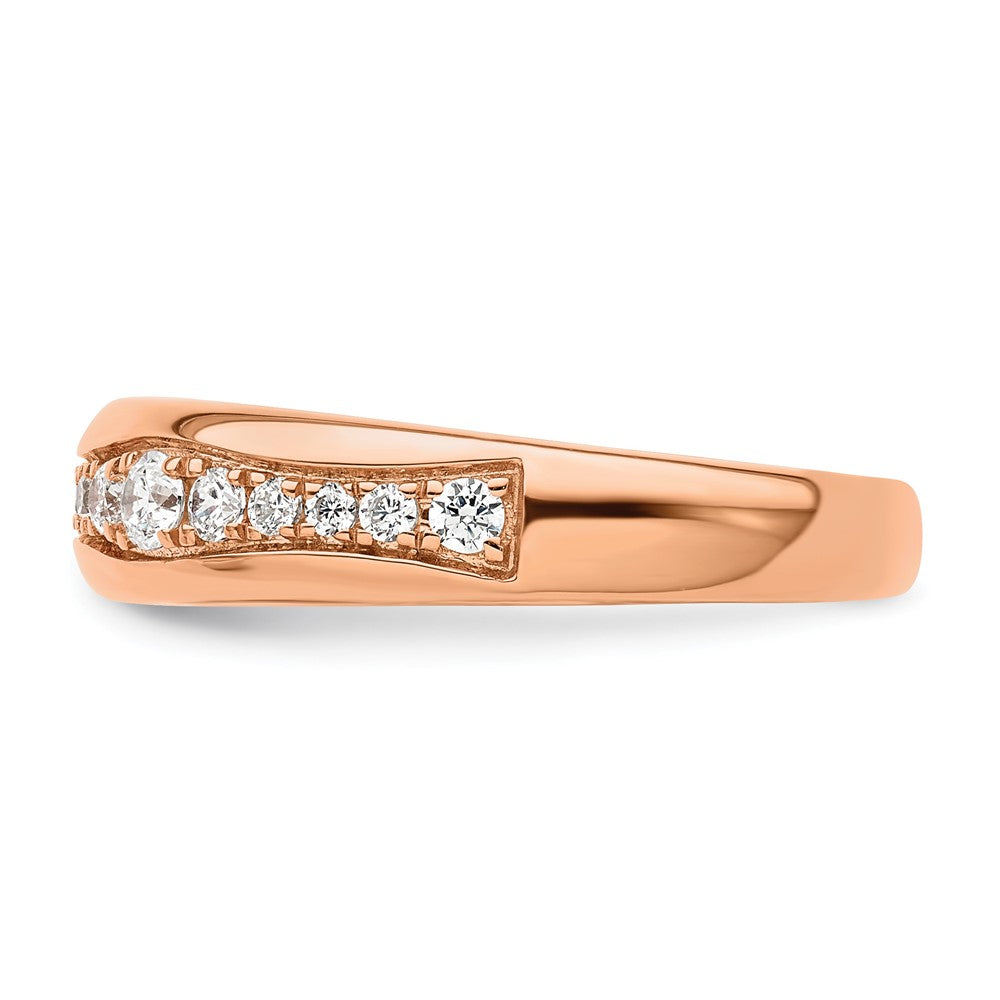 Embrace elegance with our 14k Rose Gold 3/8 Ct. Lab Grown Diamond VS/SI+ G+ Fashion Band Ring. This exquisite band features a brilliant blend of 17 expertly crafted lab-grown diamonds. Each stone shines with a clarity that highlights their G+ color grade. The centerpiece is a polished 14k rose gold band, which offers a lovely contrast to the diamonds. With each gem tapering beautifully along the band from 3 to 5 mm, this ring suits any elegant occasion. The 14k Rose Gold 3/8 Ct. Diamond Fashion Band Ring is a bold choice for those who appreciate timeless beauty and modern design.