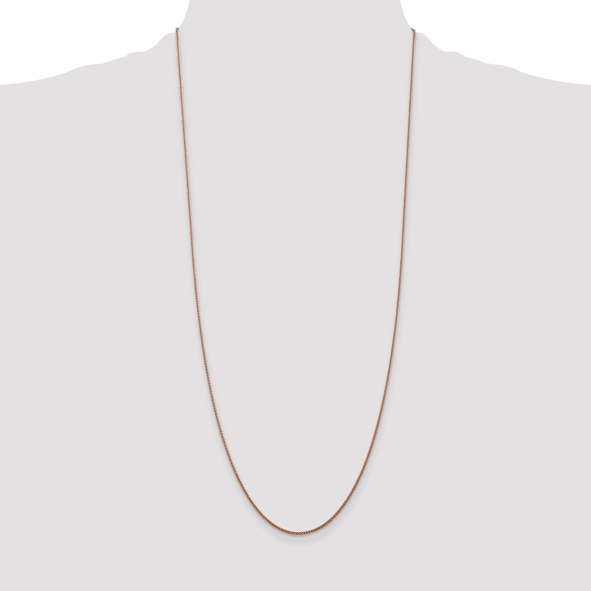 The 14K Rose Gold 30 Inch 1.05mm Diamond-Cut Spiga Chain embodies elegance and style, perfect for dressing up any look. Crafted from polished 14K gold and colored a delicate rose hue, this chain combines sophistication with modern charm. The diamond-cut texture adds an extra sparkle, while its sturdy Spiga (wheat) design ensures durability. At 30 inches long and 1.05 mm wide, it drapes gracefully. The lobster clasp offers a secure fit. Ideal for women who appreciate fine jewelry, the 14K Rose Gold 30 Inch Chain will become a cherished piece in any collection.