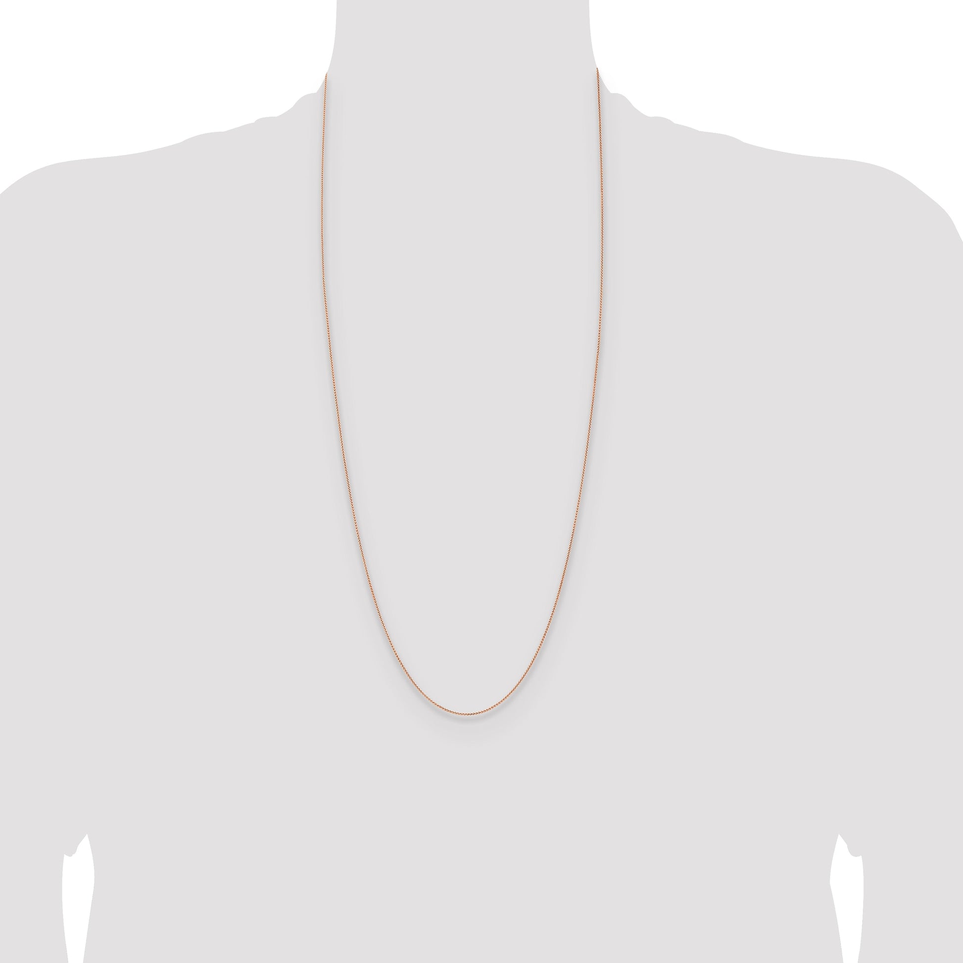 The 14K Rose Gold 30 Inch 1mm Solid Polished Spiga Chain dazzles with elegance, offering a perfect blend of style and durability. Crafted from high-quality 14K rose gold, this chain captures a warm, subtle allure that suits any occasion. Its slender 1.05 mm Spiga design provides a refined and sophisticated look, while the 30-inch length allows versatile wear. A secure lobster clasp ensures a firm hold, adding convenience to beauty. Whether layered with other pieces or worn solo, the 14K Rose Gold Chain remains a timeless accessory for any jewelry collection.