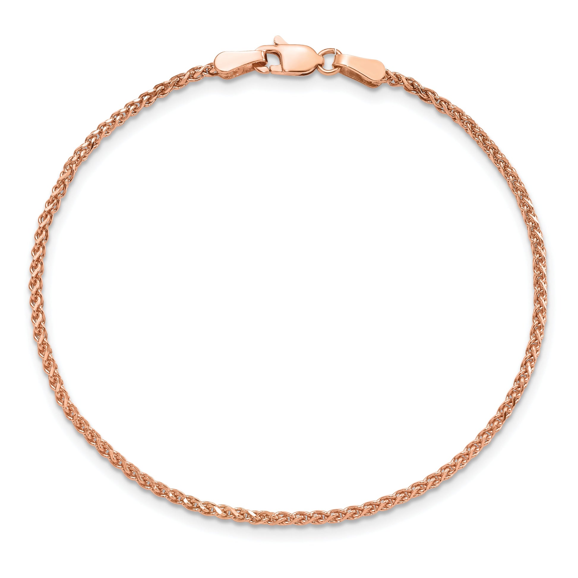Discover the elegance of our 14K Rose Gold 7 Inch 1.7mm Diamond-Cut Spiga Bracelet. This exquisite piece showcases a polished finish, adding a touch of luxury to any ensemble. Crafted with precision, this women's bracelet features a delicate 7-inch wheat chain, offering a perfect blend of durability and style. The diamond-cut texture enhances its sparkle, capturing grace with every movement. The secure lobster clasp ensures it stays in place, making it ideal for daily wear. Add this 14K Rose Gold beauty to your collection for timeless charm and sophistication.