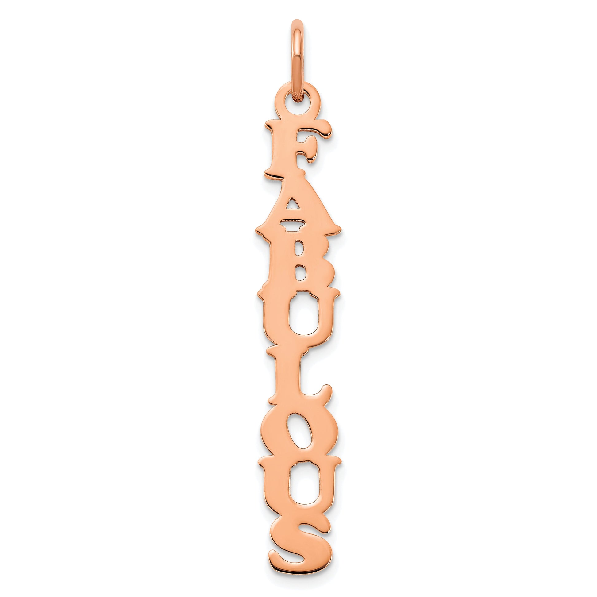 The 14K Rose Gold Cooper Font Name Plate Charm adds a touch of personal style to any jewelry piece. Crafted from high-quality rose gold, this charm shines with a polished finish. It measures approximately 34.74 mm long and 4.36 mm wide, making it a perfect size for a bracelet or necklace. The charm features a custom font that allows you to display your name or special word. With a slender thickness of 0.68 mm and a cute 5 mm bail, it easily attaches to your favorite chain. The 14K Rose Gold Cooper Font Name Plate Charm is an eye-catching piece that celebrates your unique style.