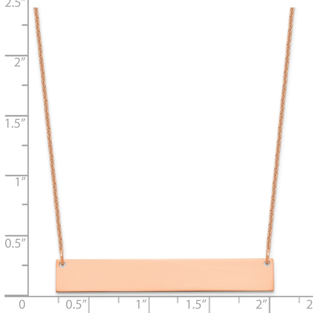 Make a statement with the 14K Rose Gold Large Blank Bar Necklace, perfect for adding a personal touch to your jewelry collection. Crafted from high-quality 14-karat rose gold, this necklace features a sleek, polished finish and a bold 18-inch cable chain. The large, blank bar charm measures 46 mm in length and can be engraved for that extra special feel. Its sturdy lobster clasp keeps it secure, while the elegant design makes it ideal for women who love simple yet meaningful jewelry. The 14K Rose Gold Large Blank Bar Necklace lets you showcase your style and personality effortlessly.