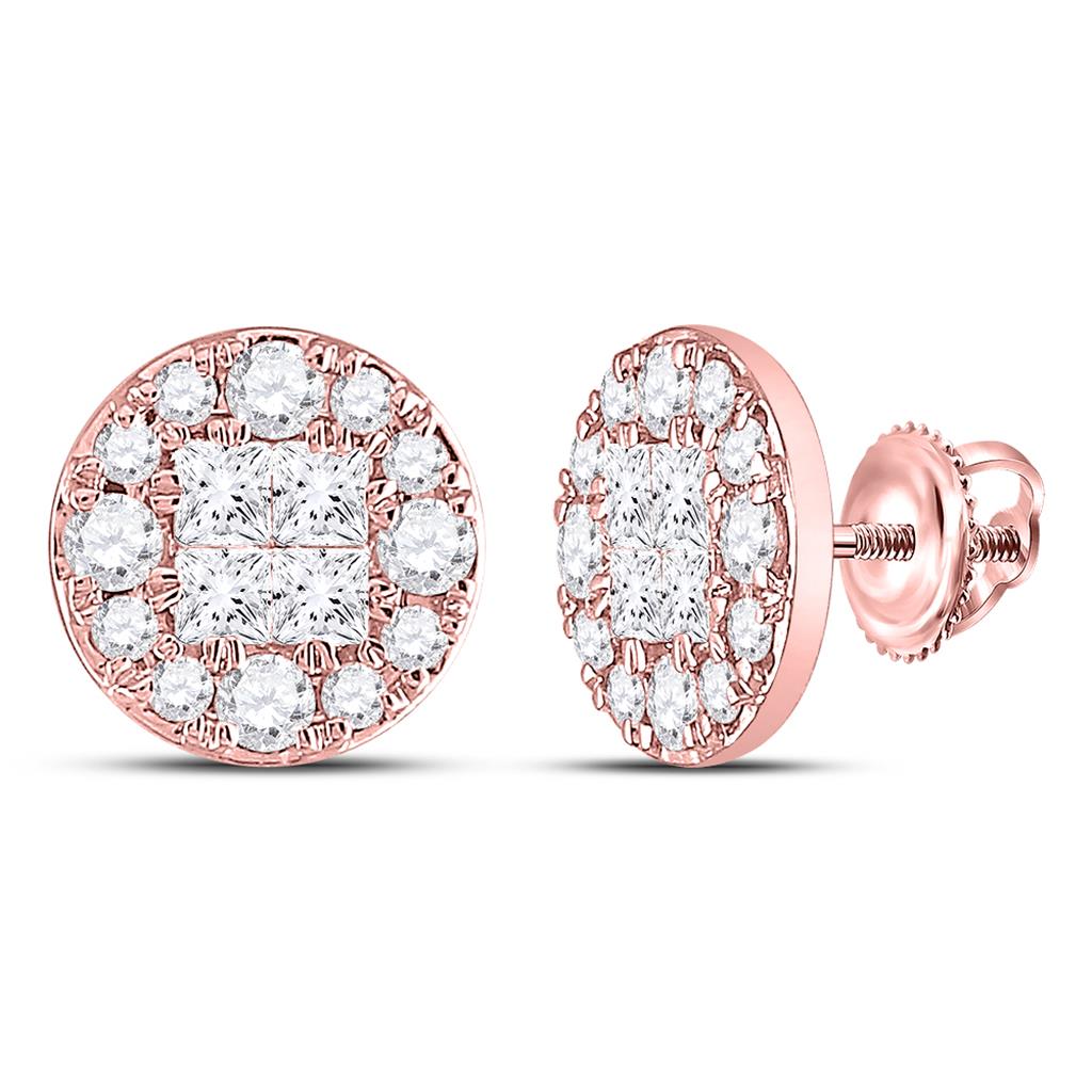 14k Rose Gold Princess Diamond Cluster Earrings 1/2 Cttw