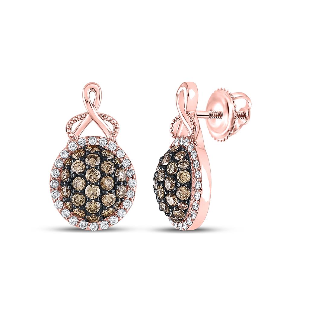 14k Rose Gold Round Brown Diamond Cluster Earrings 1 Cttw