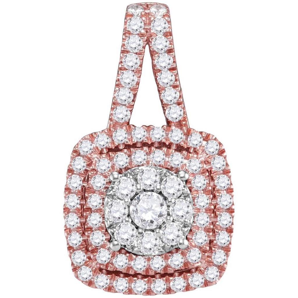14k Rose Gold Round Diamond Cluster Cushion Pendant 1 Cttw