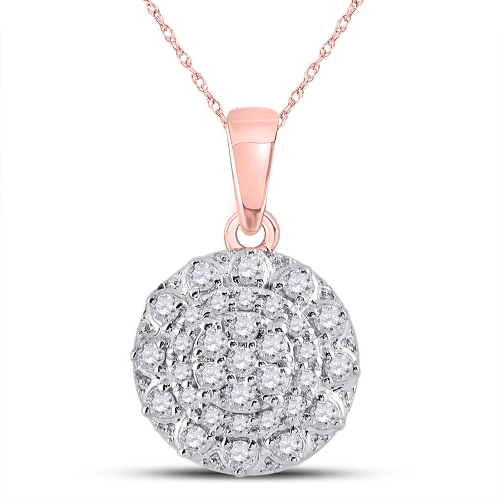 14k Rose Gold Round Diamond Flower Cluster Pendant 1/3 Cttw