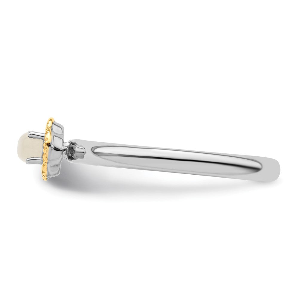 Discover the stunning 14K/Silver Two-Tone Sterling Silver & 14K Stackable Expressions Moonstone Polished Ring, a perfect piece to add elegance to any look. This ring features a smooth, polished oval moonstone set in a sleek band with yellow gold accents. Its 2.25mm width offers just the right touch of shine, while the prong setting keeps the stone secure. Crafted with care, the mix of sterling silver and 14K gold gives this ring durability and style. The stackable design allows you to wear it alone or with other rings. The 14K/Silver Two-Tone Sterling Silver & 14K Stackable Expressions Moonstone Polished Ring is a versatile choice for everyday elegance.
