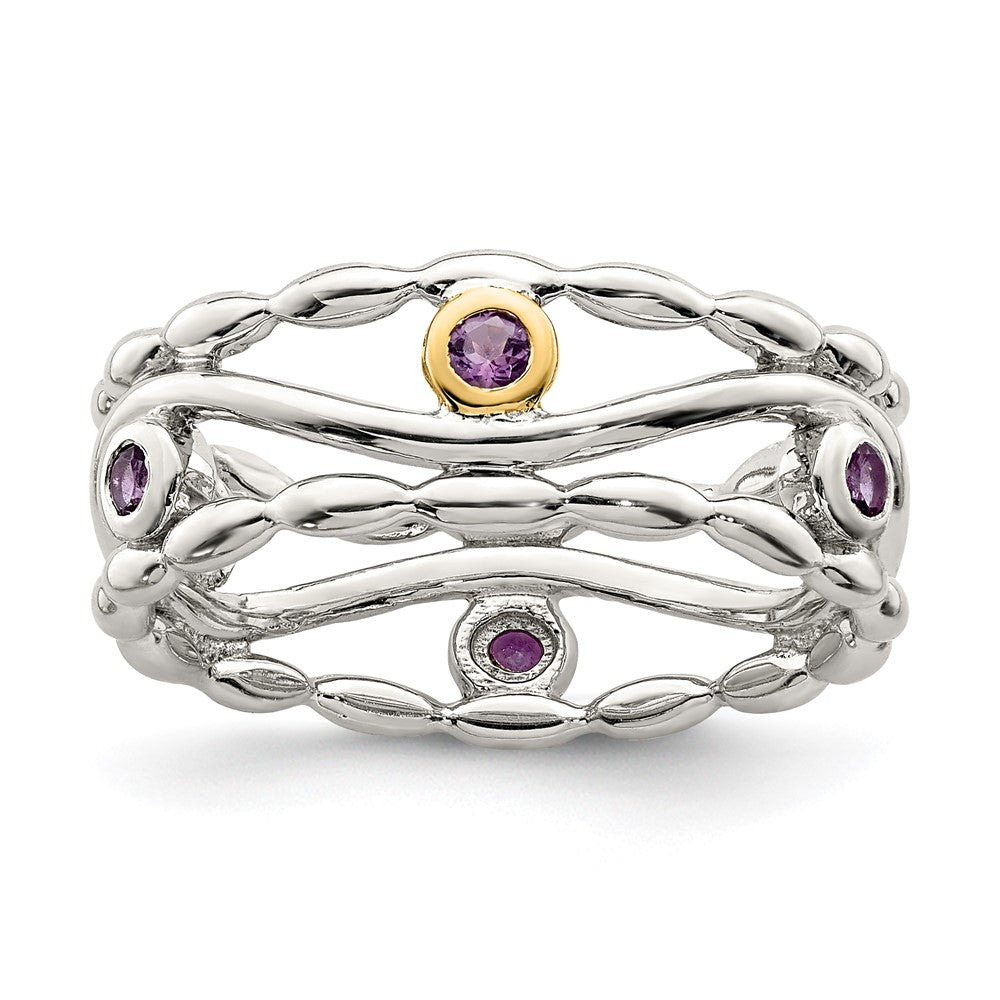 The Two-Tone Sterling Silver and 14K Accent Amethyst Ring is a stunning piece of jewelry that shines with elegance. This ring features a rich purple amethyst, crafted in a round shape and heated to bring out its deep hue. Accented with bright yellow 14K gold, the design adds a bold touch. Made from polished 14K gold and silver, it offers a solid feel that lasts. Although not adjustable, this ring makes a perfect gift for those who love a mix of style and quality. The Two-Tone Sterling Silver with 14K Accent Amethyst Ring truly stands out in any collection.
