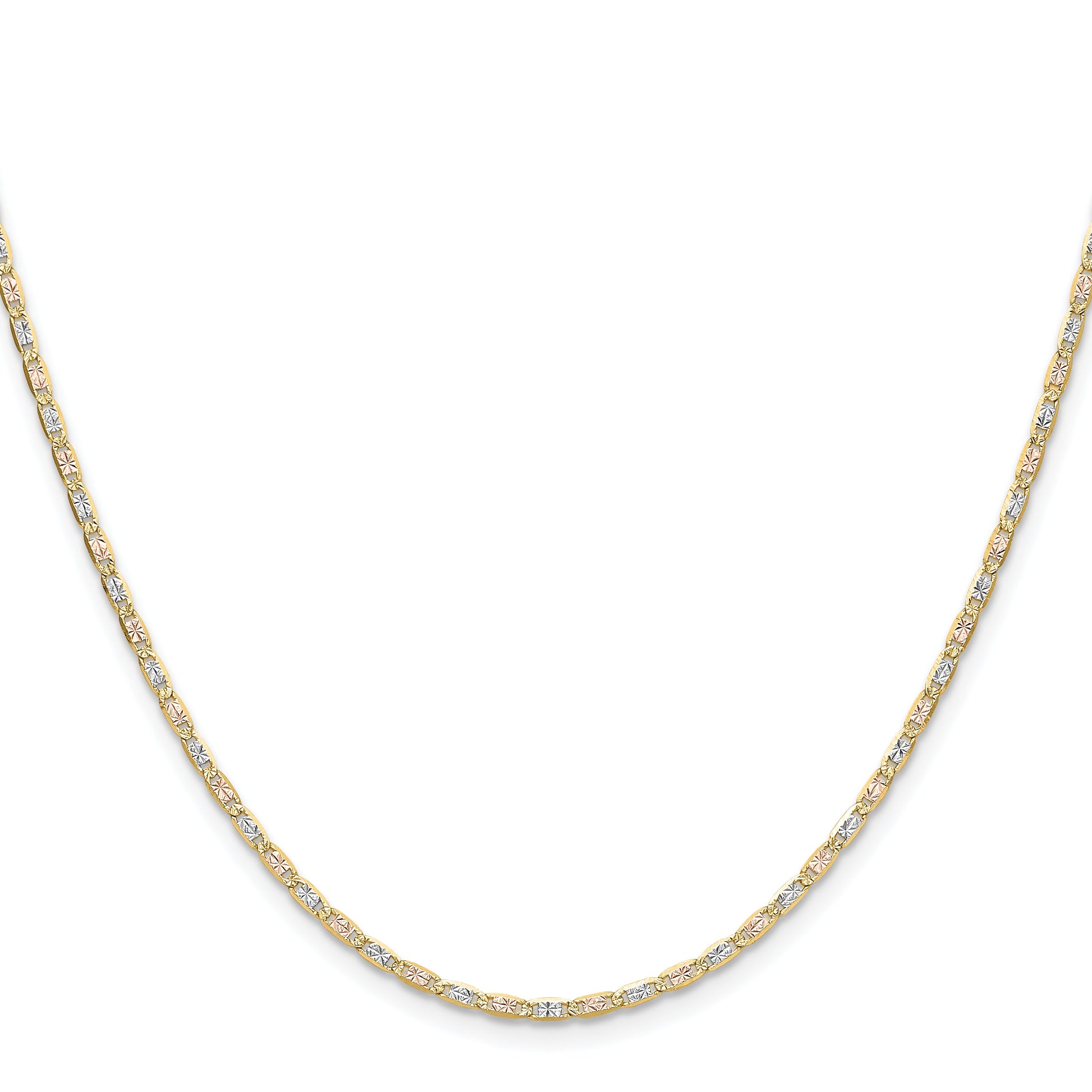 Discover the elegance of the 14K Tri-Color 2.0mm Gold Pavé Valentino Chain, where luxury meets sophistication. Crafted with pure 14K gold, this exquisite chain showcases an alluring tri-color design, expertly blending hues for a timeless style. Its delicately crafted 2.0mm links offer a sleek, understated look, ideal for everyday wear or special occasions. Perfect for layering or as a standalone piece, this Valentino chain elevates any ensemble with a touch of glamour. Secure this standout piece today and experience the exquisite allure of the 14K Tri-Color 2.0mm Gold Pavé Valentino Chain.