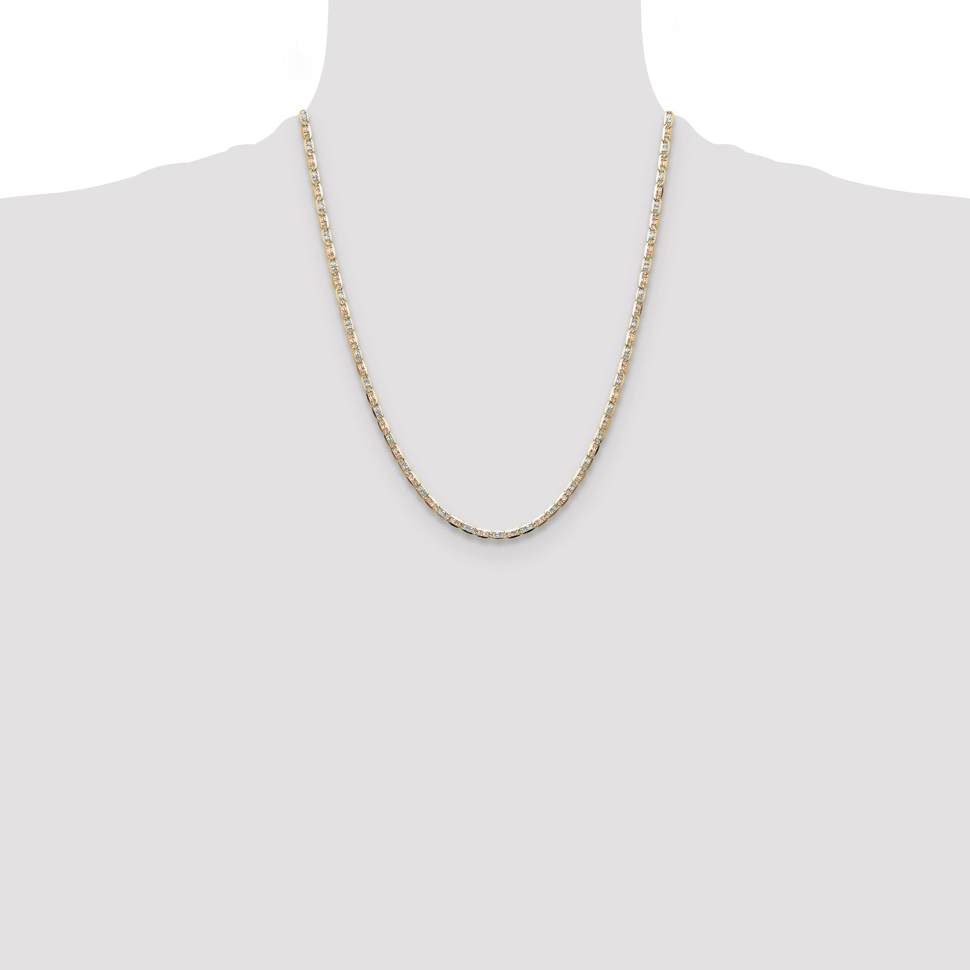 The 14K Tri-Color 3.2mm Gold Pavé Valentino Chain adds a pop of color to any outfit. Made from 14K gold, this chain showcases the elegant blend of rose, white, and yellow gold, capturing light beautifully. Its 3.2mm thickness offers a sturdy yet refined charm. Perfectly suited for both casual and formal settings, this tri-color chain is ideal for layering or wearing solo. The Valentino link design adds a touch of sophistication and class. Available in 14K gold, this chain effortlessly enhances your jewelry collection.