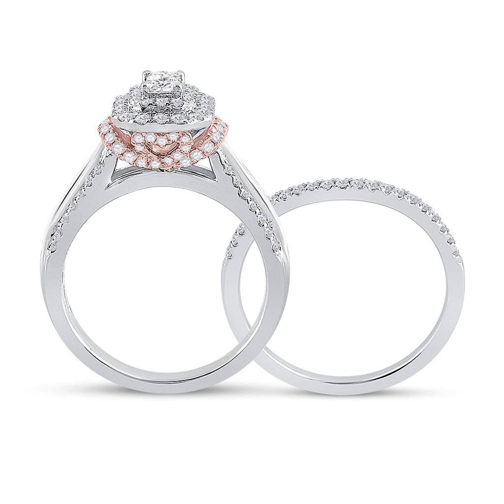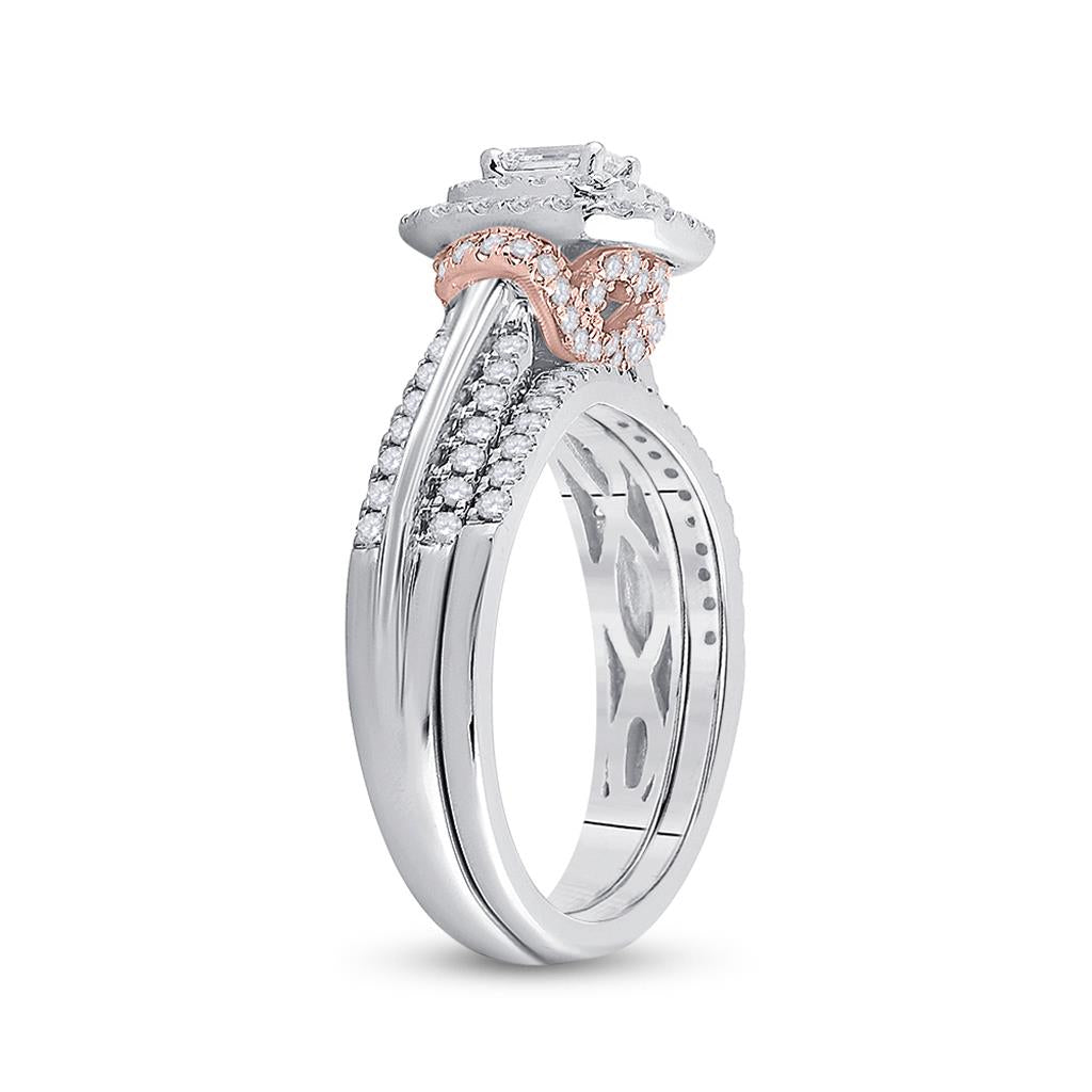 14k Two-tone Gold Emerald Diamond Bridal Wedding Ring Set 1 Cttw (Certified)