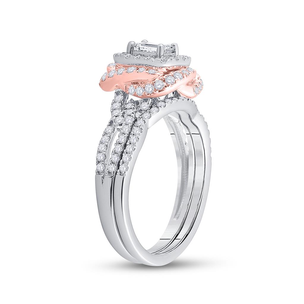 14k Two-tone Gold Emerald Diamond Bridal Wedding Ring Set 1 Cttw (Certified)