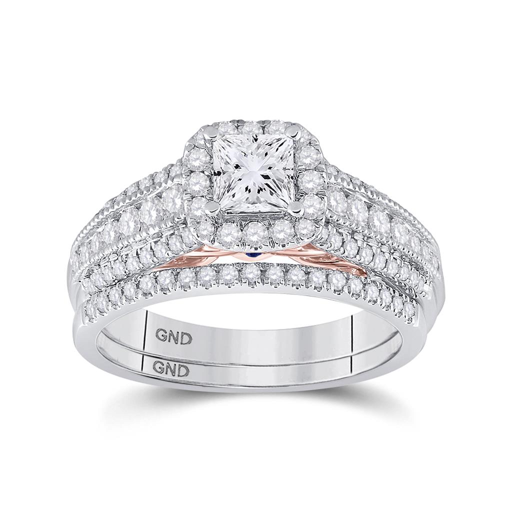 14k Two-tone Gold Princess Diamond Bridal Wedding Ring Set 1-1/4 Cttw (Certified)