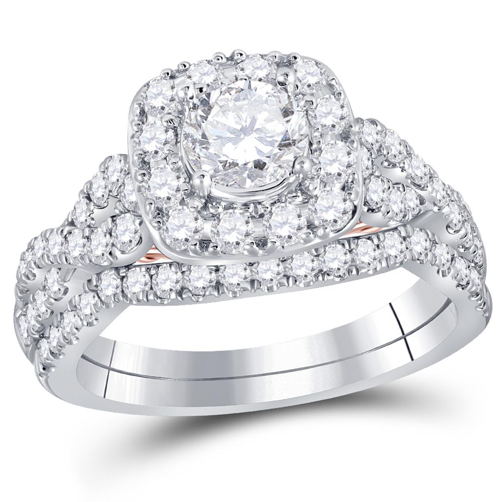 14k Two-tone Gold Round Diamond Bridal Wedding Ring Set 1-3/4 Cttw (Certified)