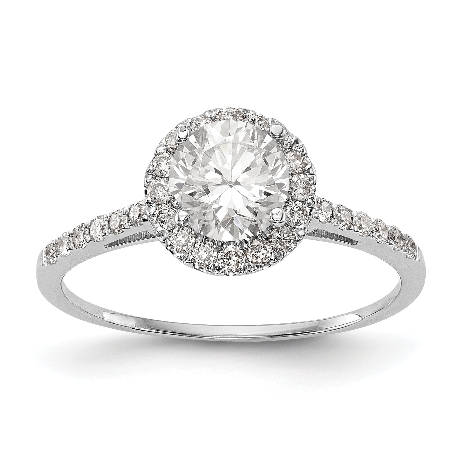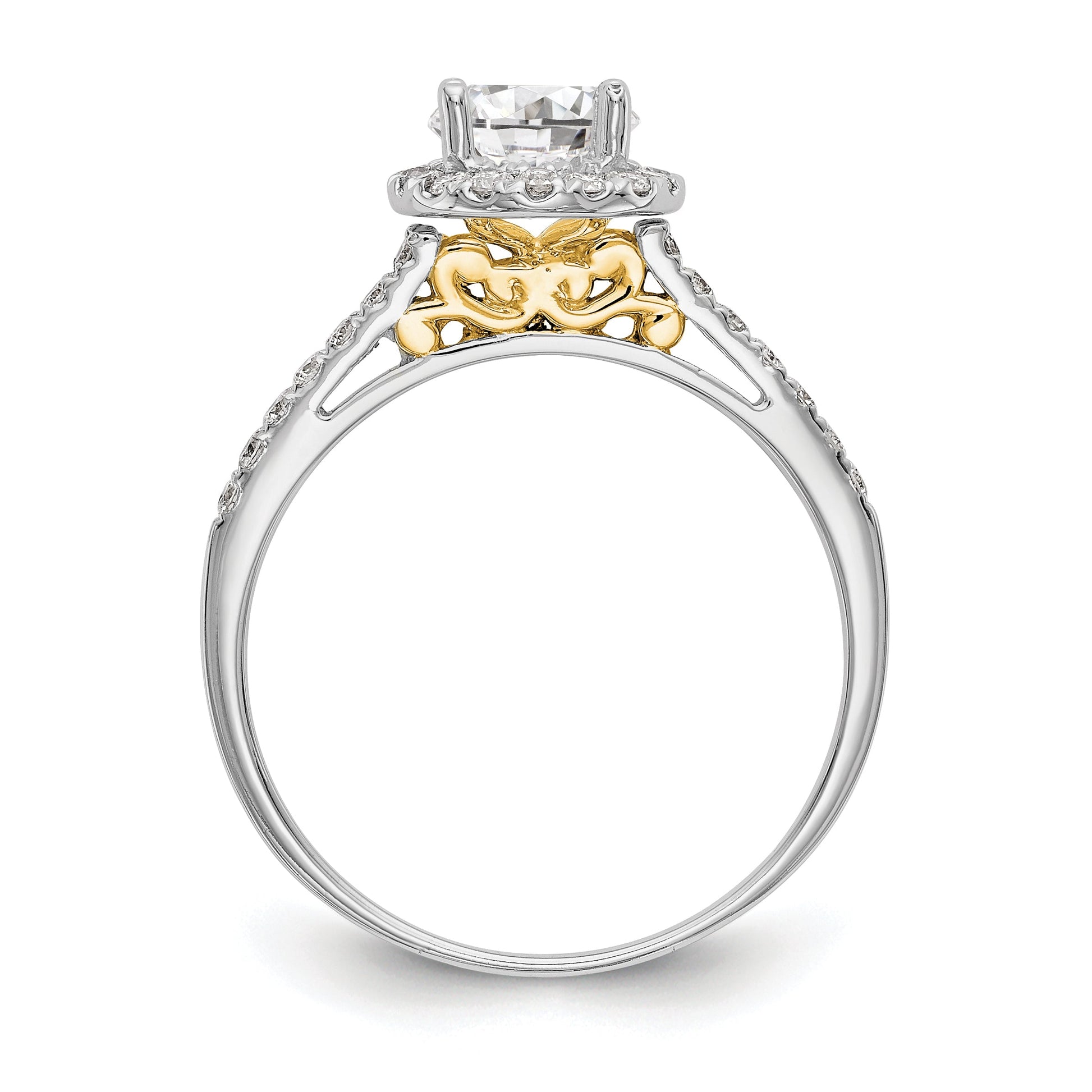 14k Two tone Gold Round Halo Simulated CZ Diamond Engagement Ring